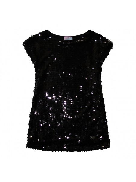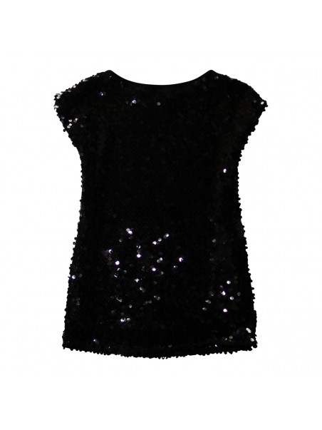 Black dress from Chiara Ferragni featuring round collar, short sleeves, all over black pailetter and regular vestibility.