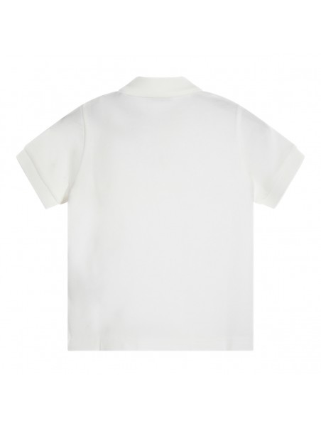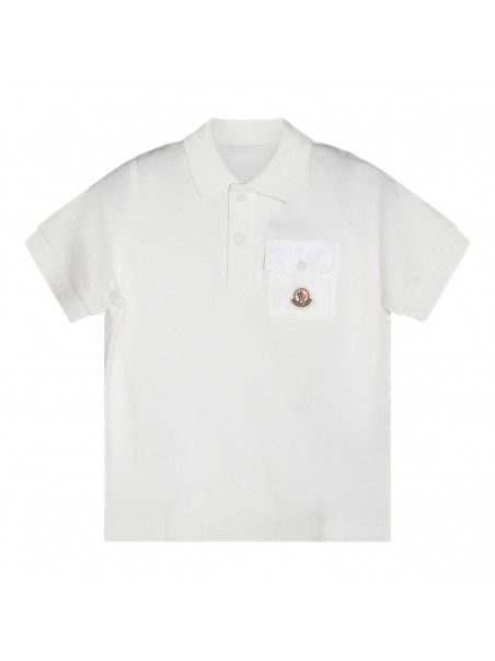 White cotton polo shirt from Moncler featuring polo shirt collar, short sleevs, logo patch and regular vestibility.