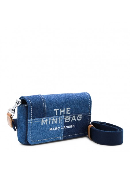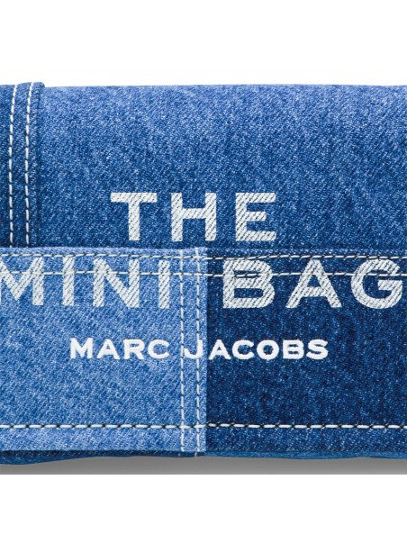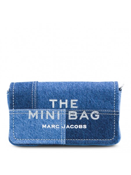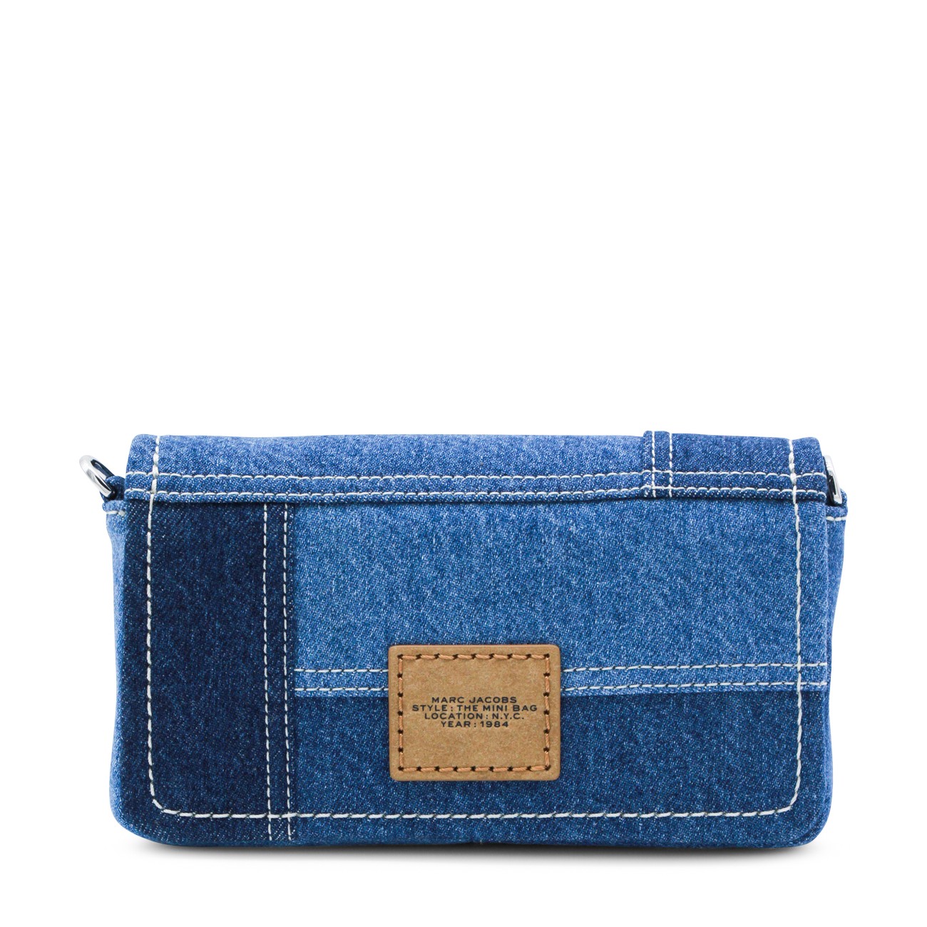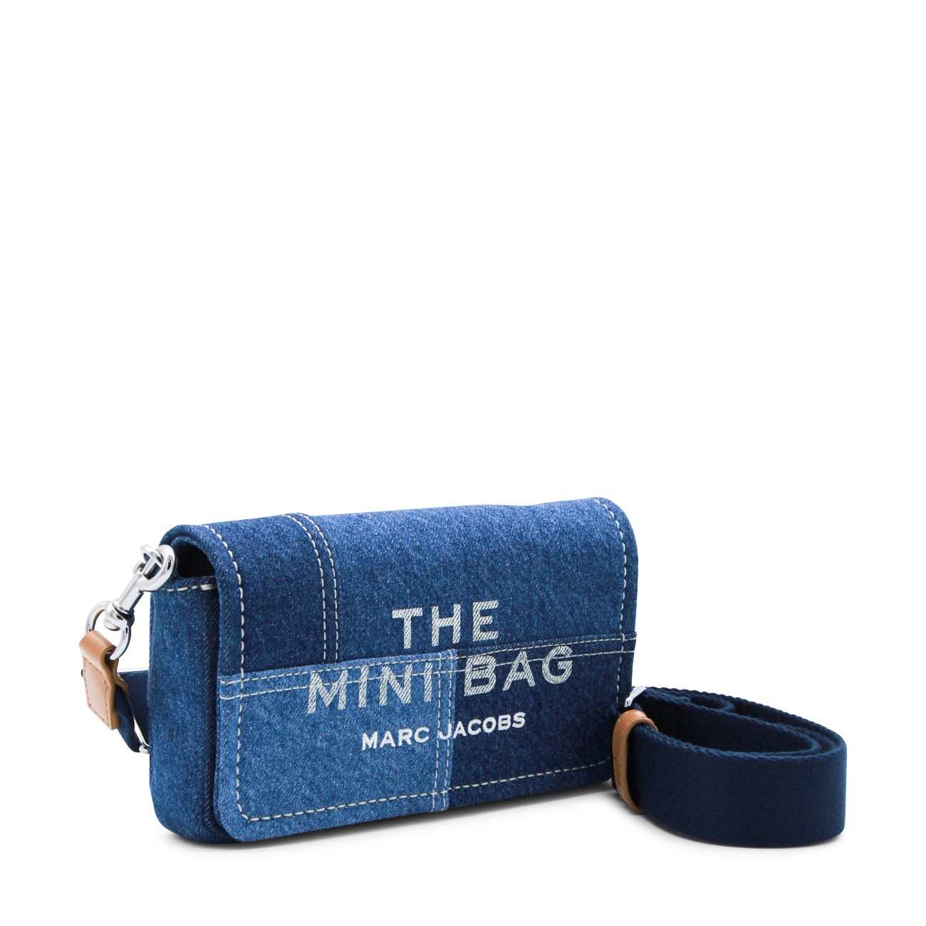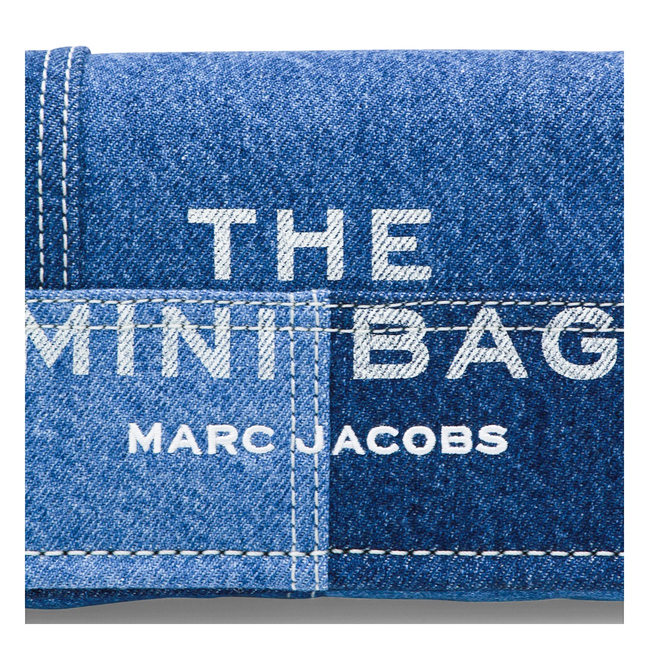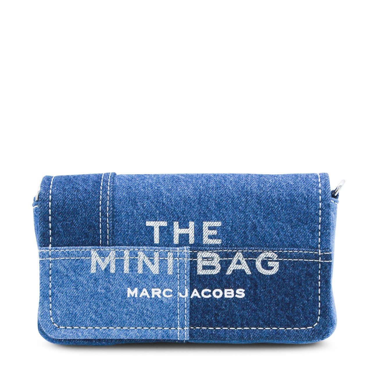 Denim cotton The Mini Bag from Marc Jacobs featuring rectangular shape, adjustable and removable shoulder strap, logo print at the front, magnetic closure and main compartment.