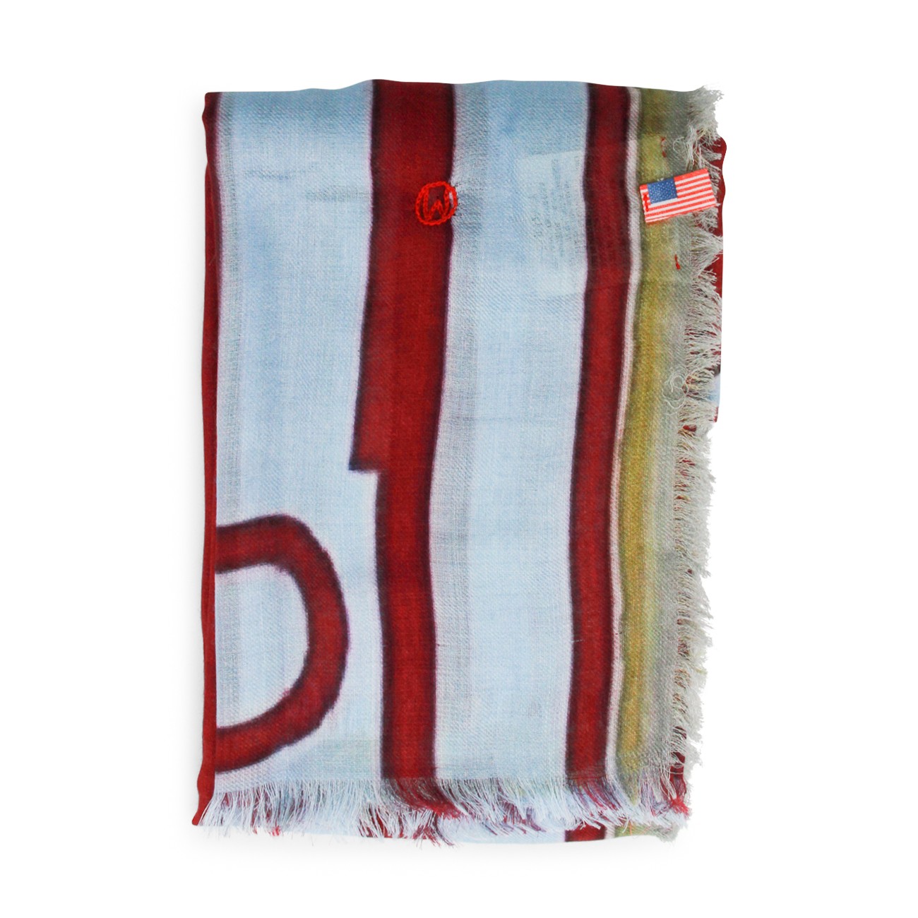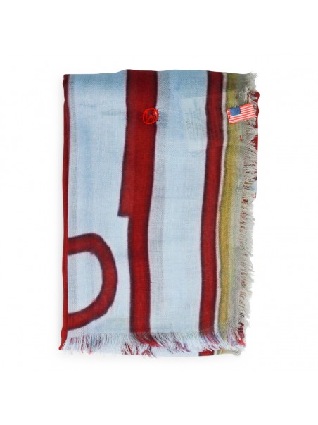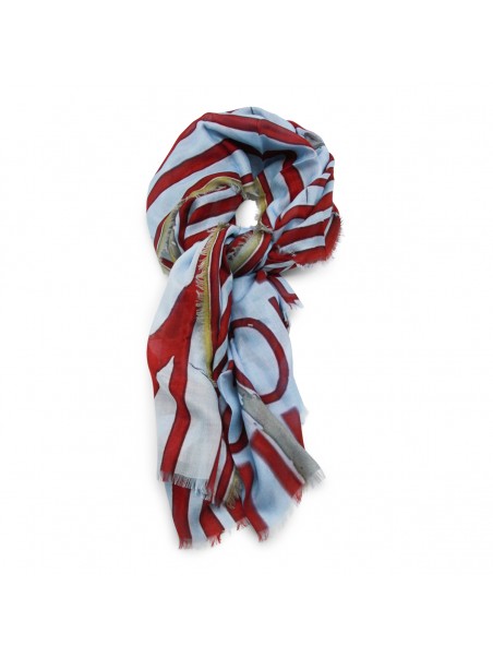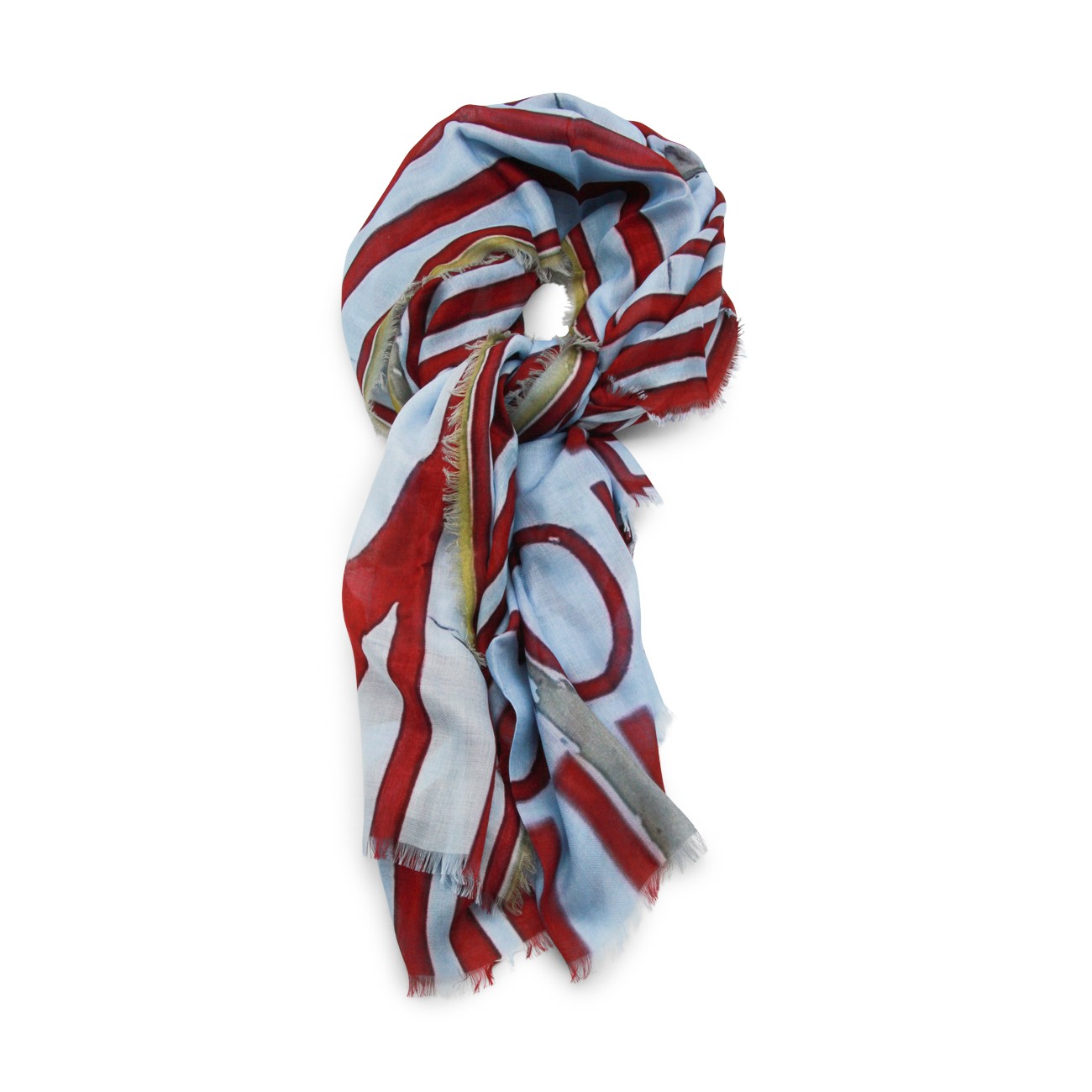 Pop Corn silk blend printed scarf from Talking Walls featuring fringed hems, Pop Corn print, rectangular shape and logo label.