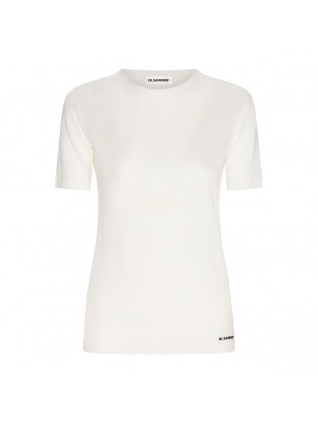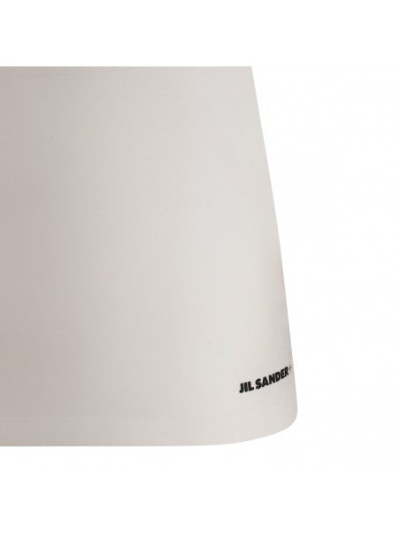 White cotton T-shirt from Jil Sander featuring crew neck, short sleeves, logo print at the hem and straight hem.