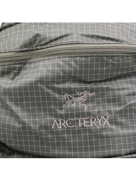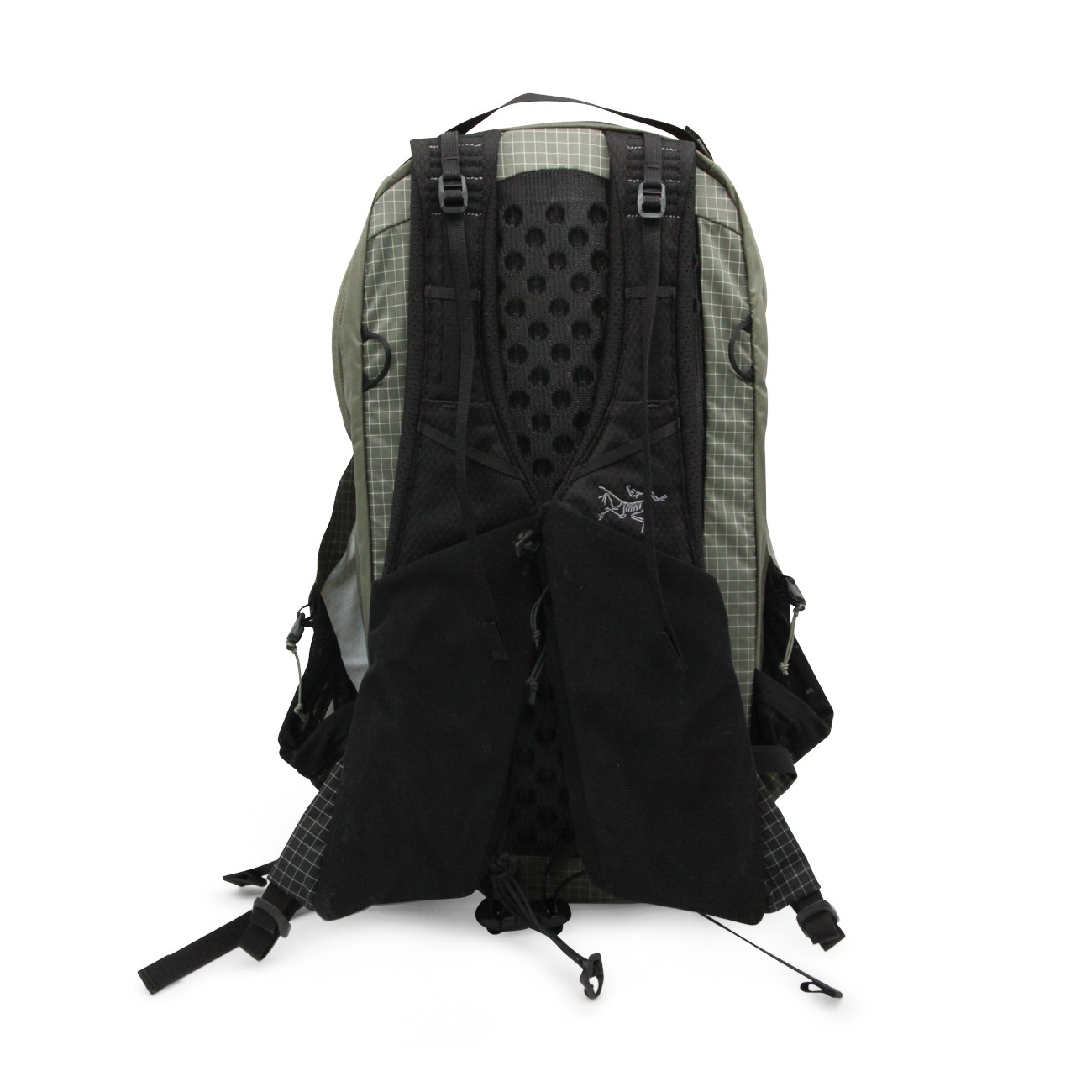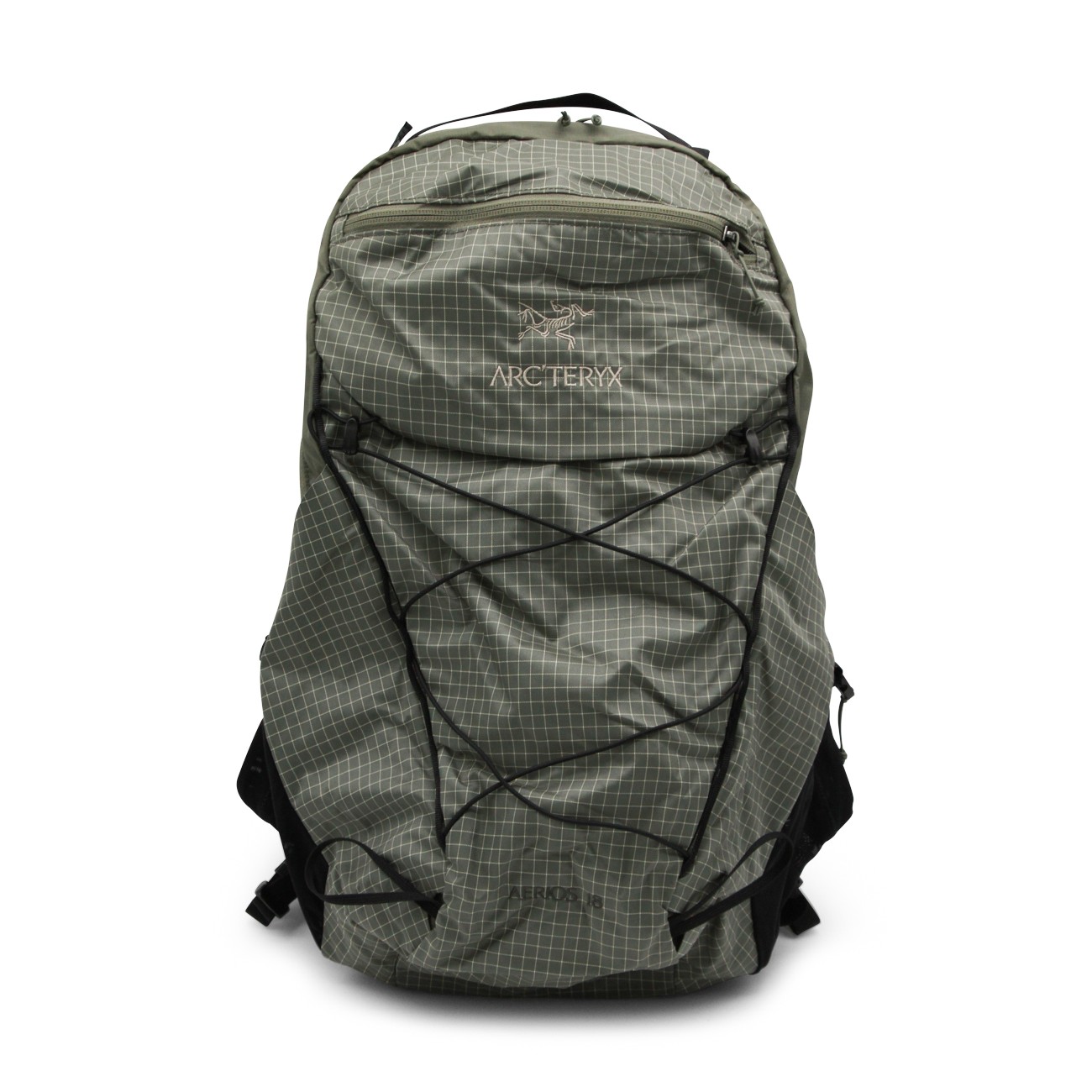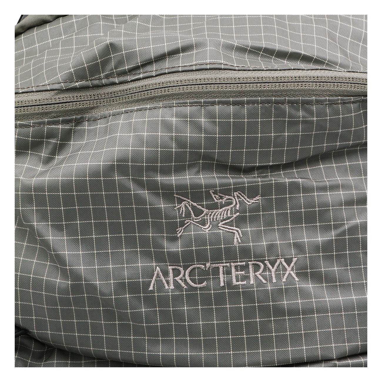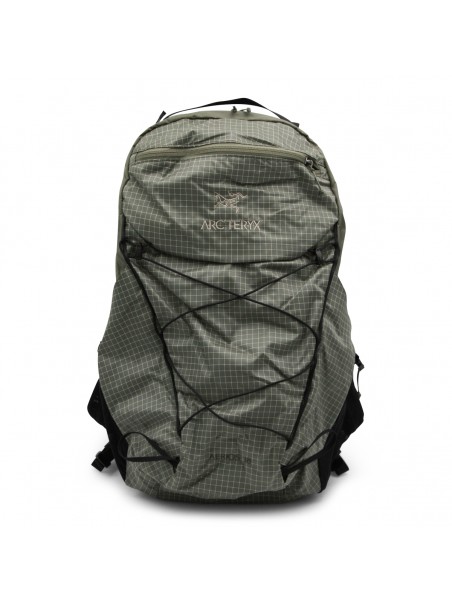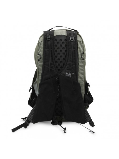 Dark Green Aerios 18 backpack from Arc'Teryx featuring top handle, adjustable shoulder straps, main compartment with zip fastening, logo and zip pockets.