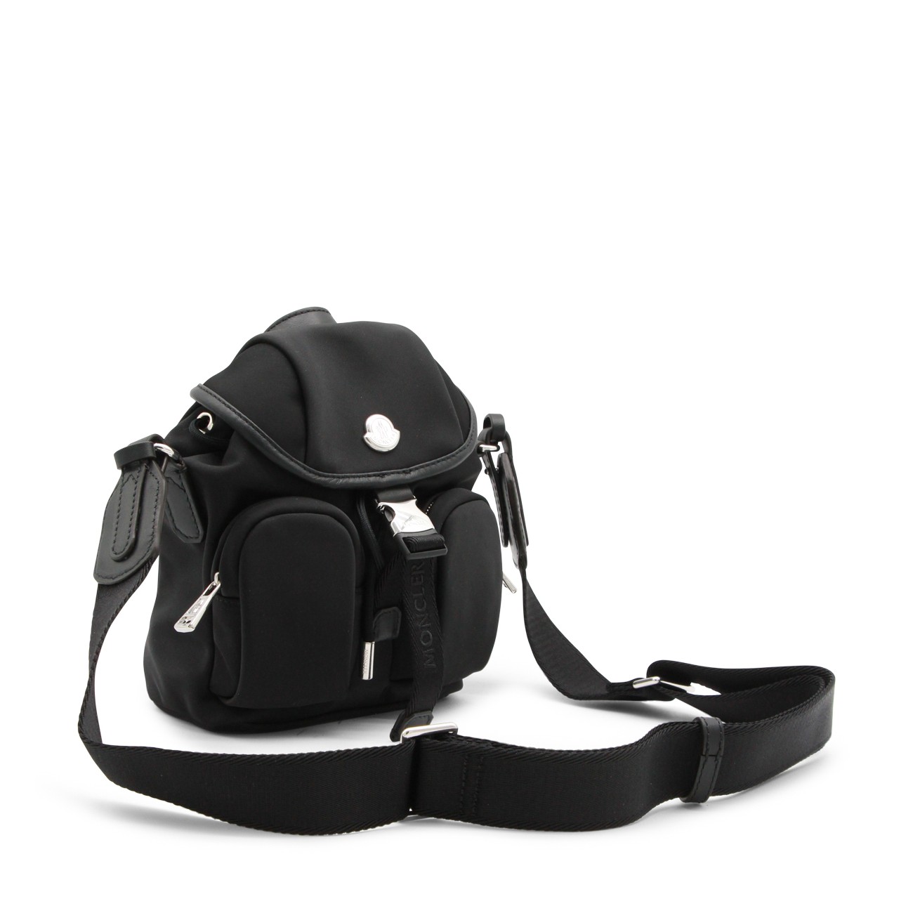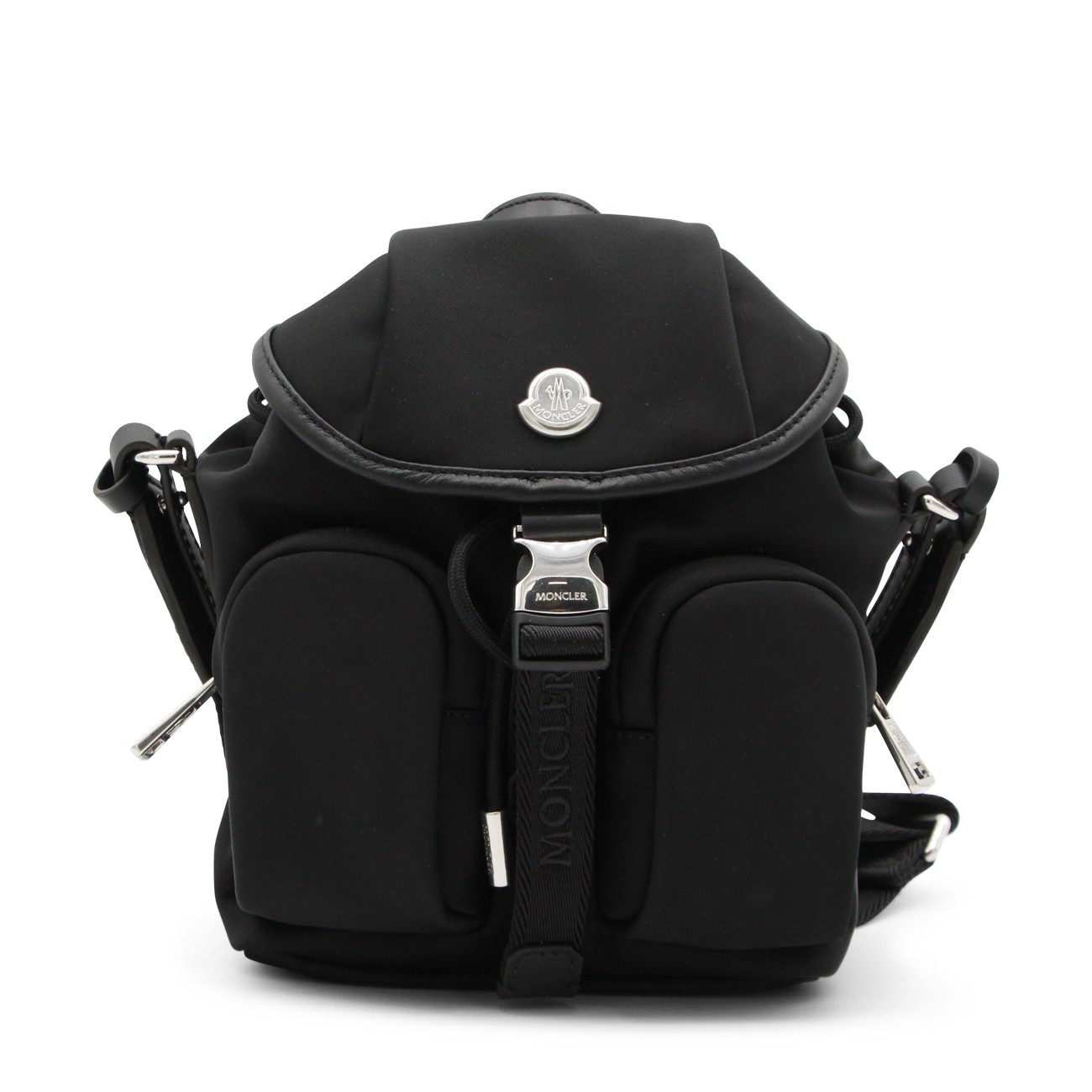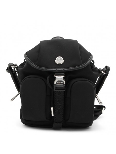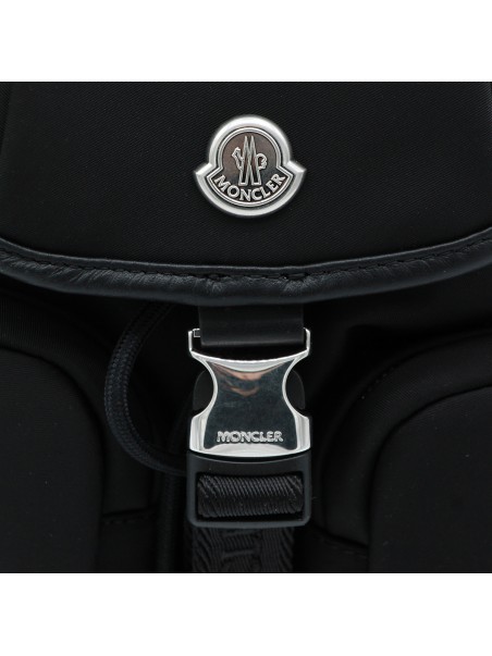 Black backpack from Moncler featuring multipockets, logo, silver tone hardware, adjustable straps and inside pockets.
