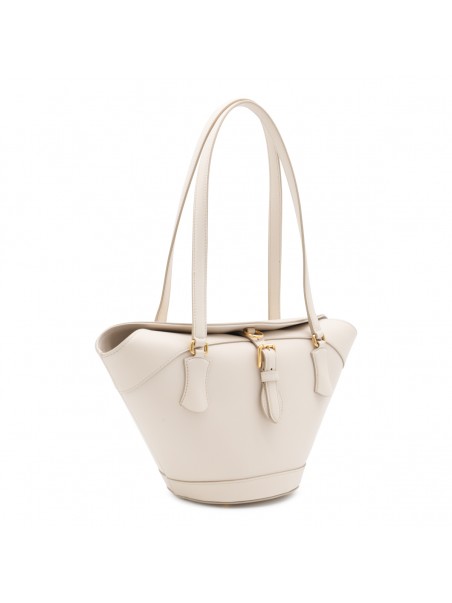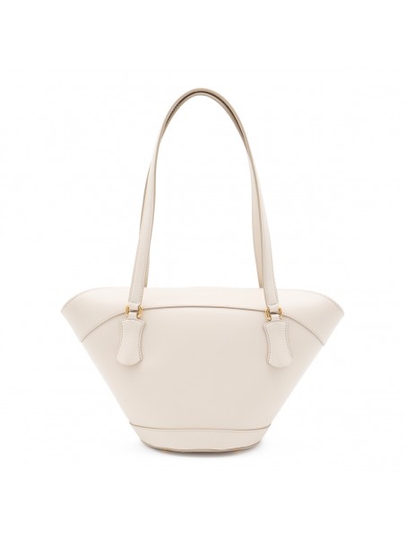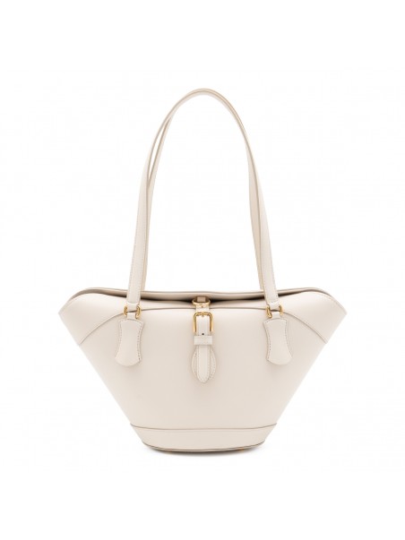 White leather satchels from Dolce & Gabbana featuring top handles, buckle fastening, triangular shape and main compartment.
