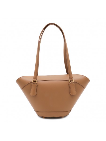 Brown leather satchels from Dolce & Gabbana featuring top handles, buckle fastening, triangular shape and main compartment.