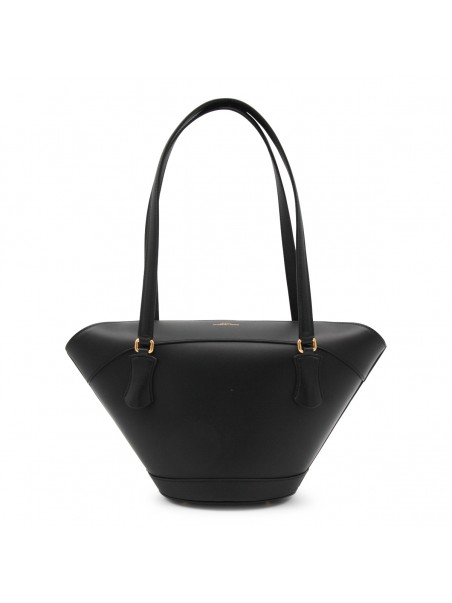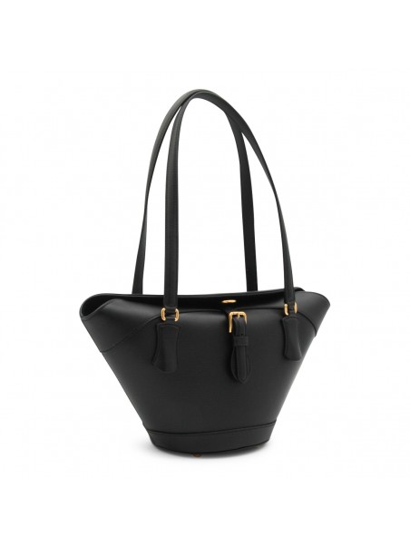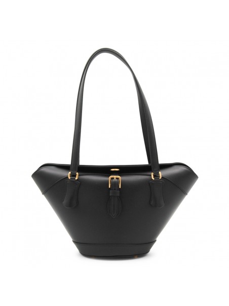 Black leather satchels from Dolce & Gabbana featuring top handles, buckle fastening, triangular shape and main compartment.
