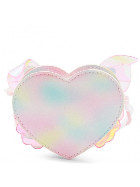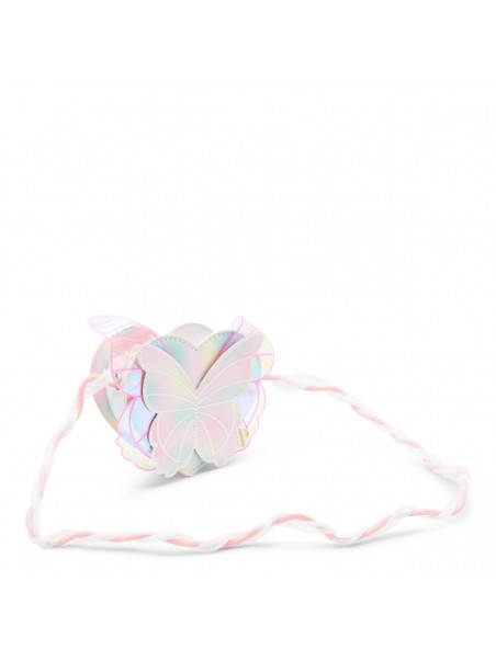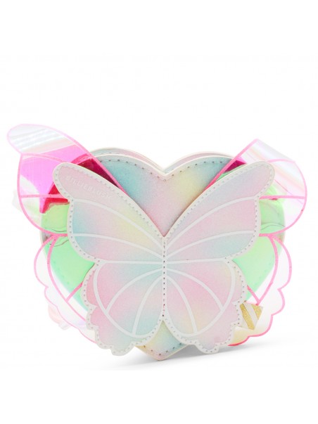 Multicolor crossbody bag from Bilieblush featuring heart shape, twisted shoulder strap, zip fastening and butterfly applied on the front.