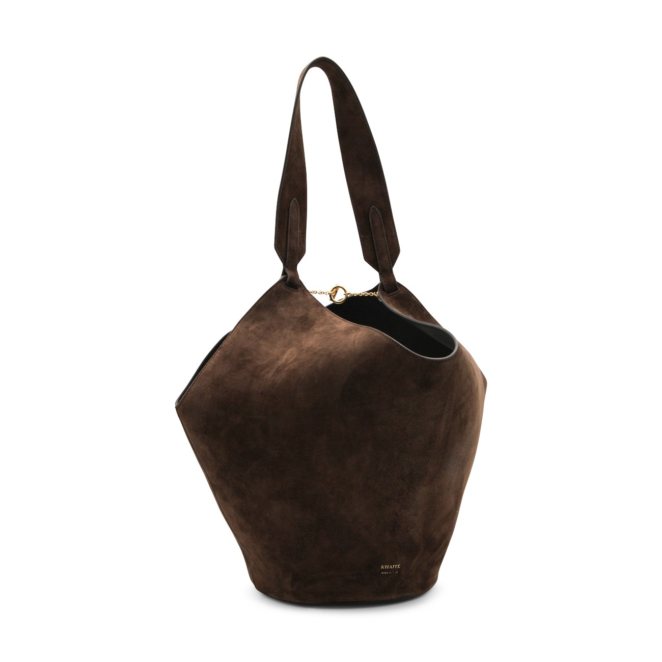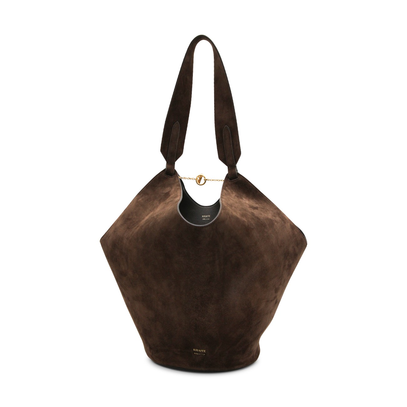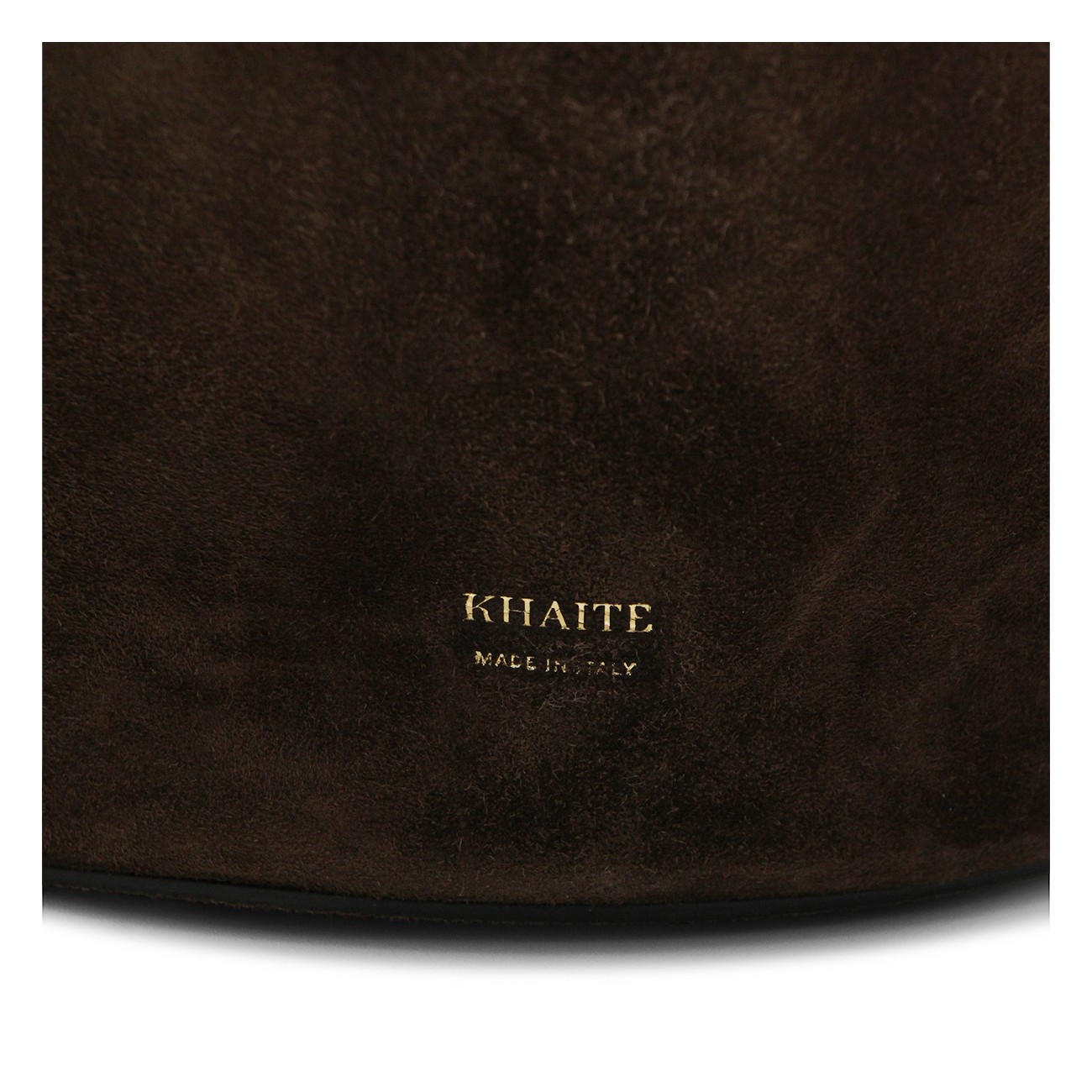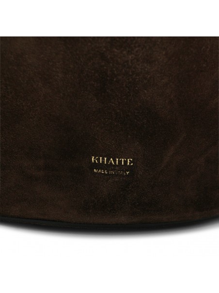 Brown leather satchel from Khaite featuring top handle, main compartment and gold tone hardware.