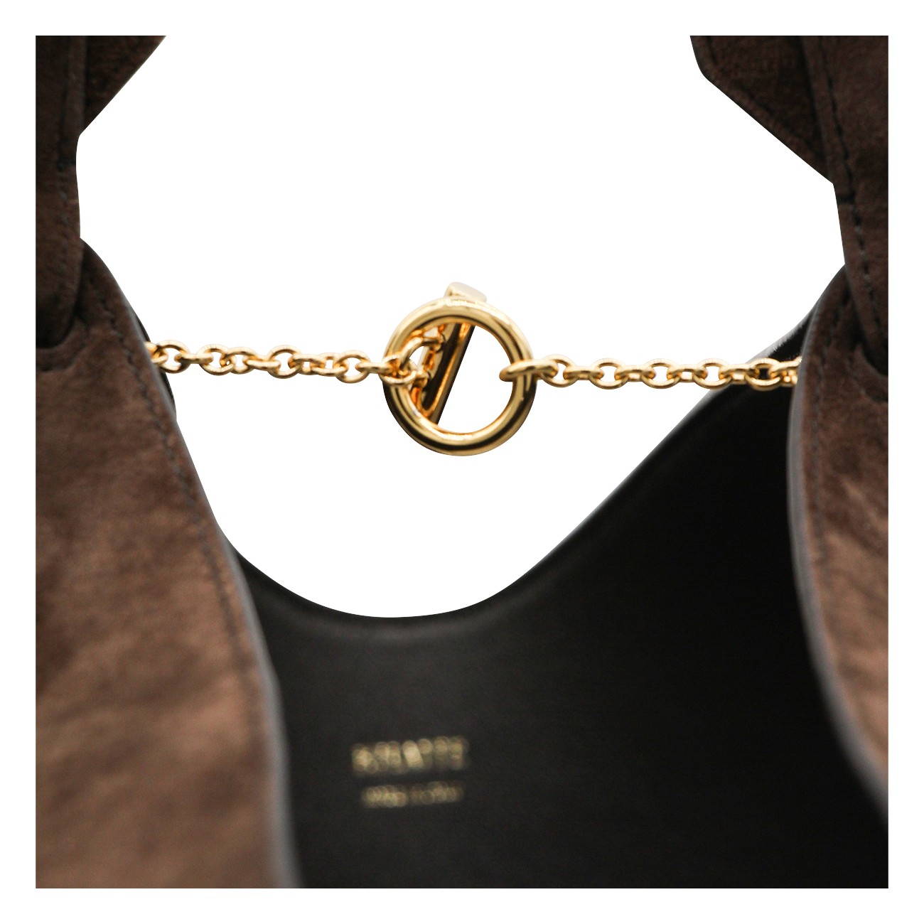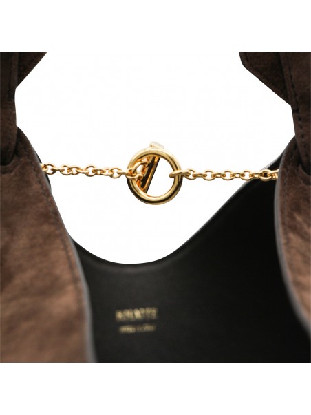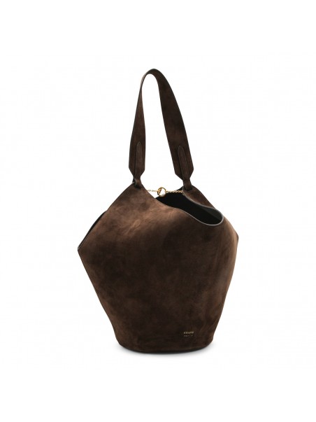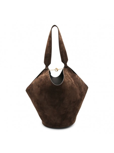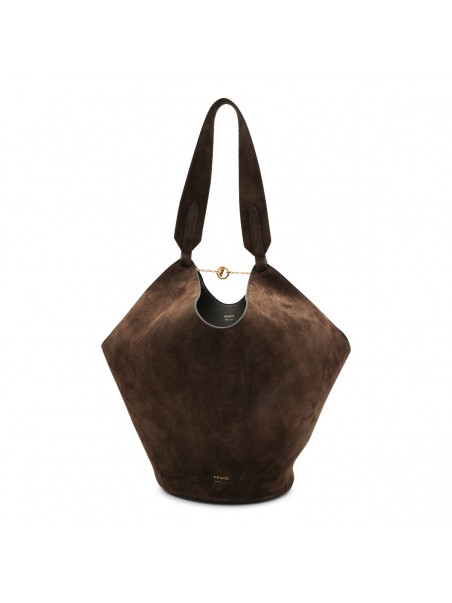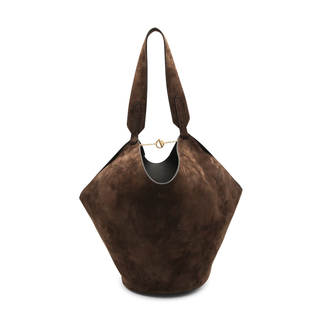 Brown leather satchel from Khaite featuring top handle, main compartment and gold tone hardware.