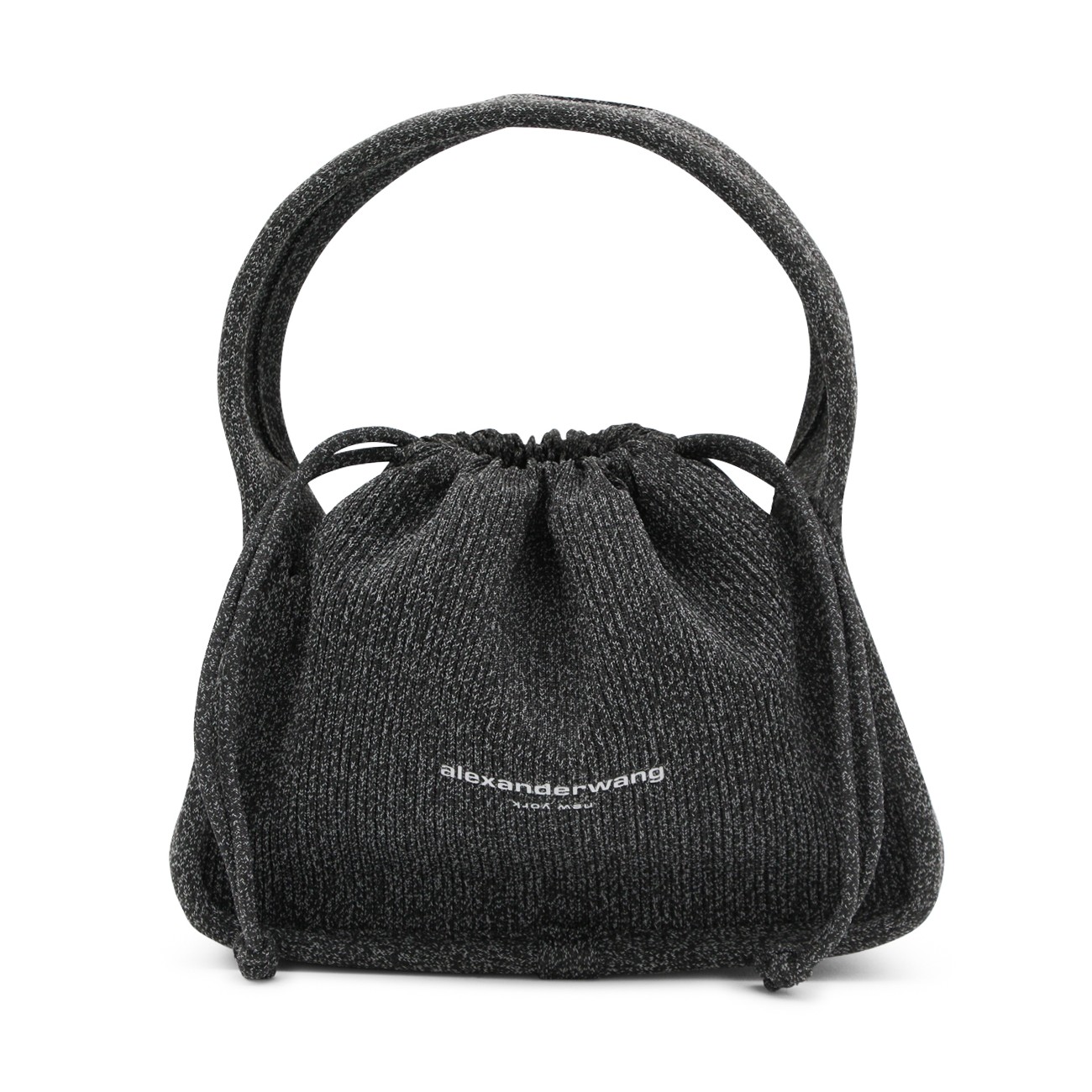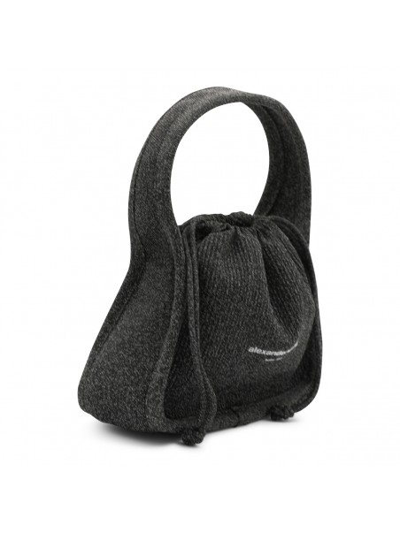 Black cotton satchel from Alexander Wang featuring top handle, lace fastening, main compartment and frontal logo.