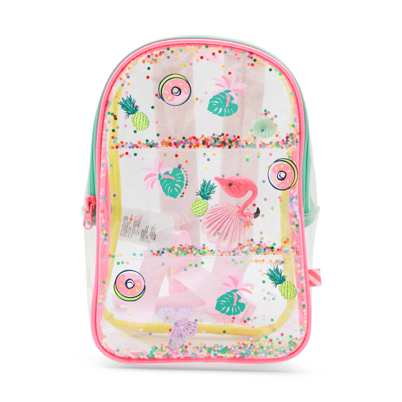 Pink backpack from Billieblush featuring top handle, adjustable shoulder straps, main compartment, zip fastening, frontal stamp and details.
