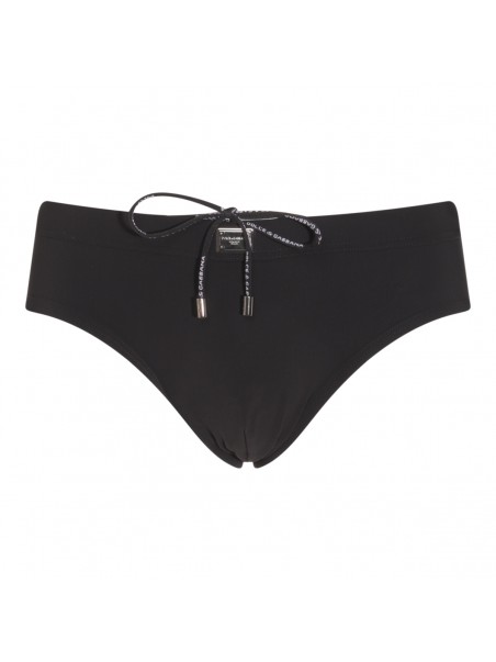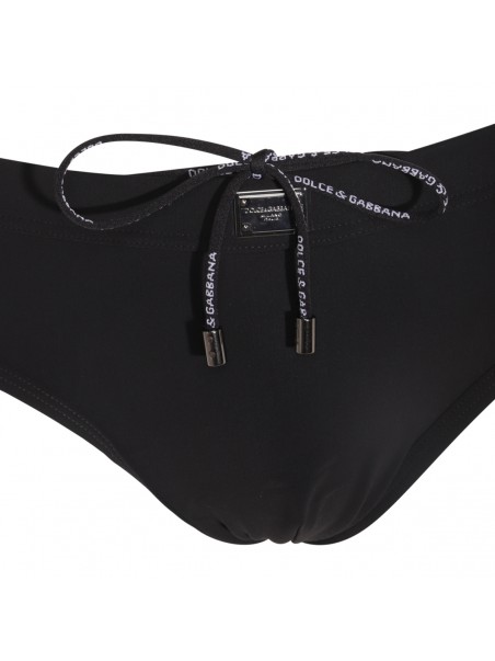 Black beachwear from Dolce&Gabbana featuring slip, drawstring and logo.