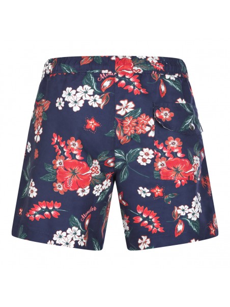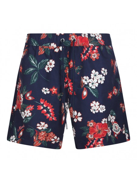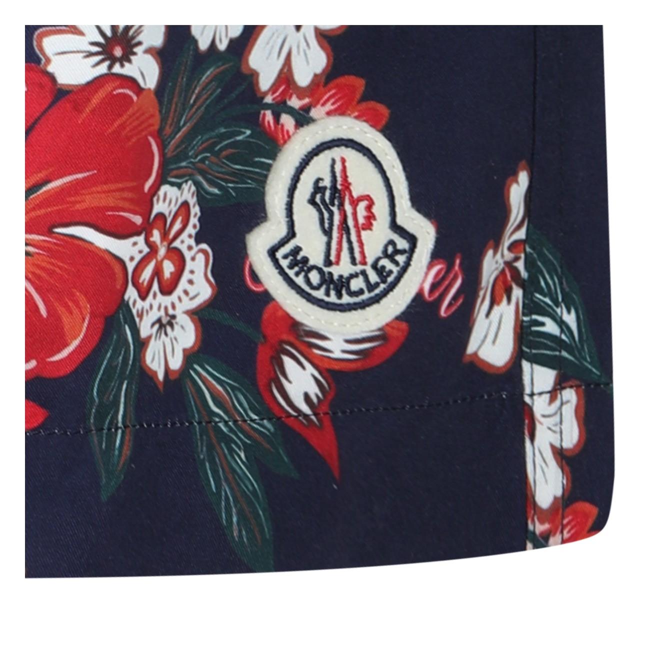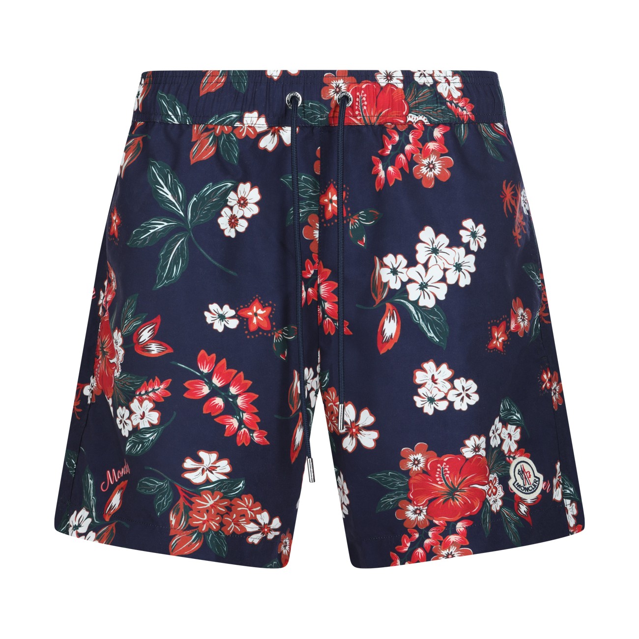 Navy beachwear from Moncler featuring elasticated waist, mid length and all over stamp.