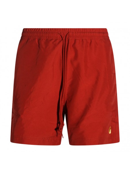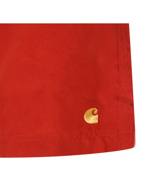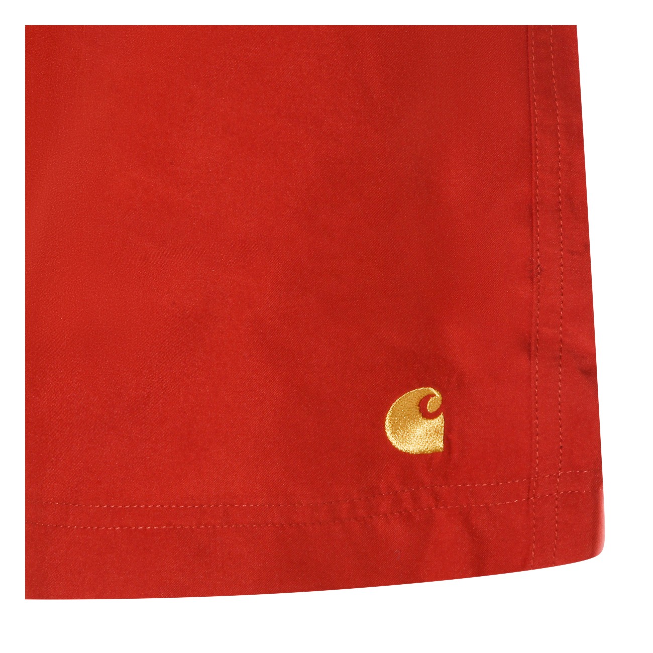 Oxide red beachwear from Carhartt Wip featuring elasticated waist, laces fastening, frontal logo, back pocket and regular fit.