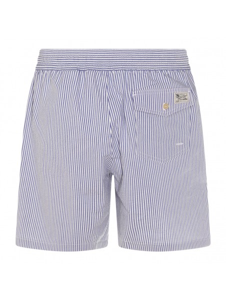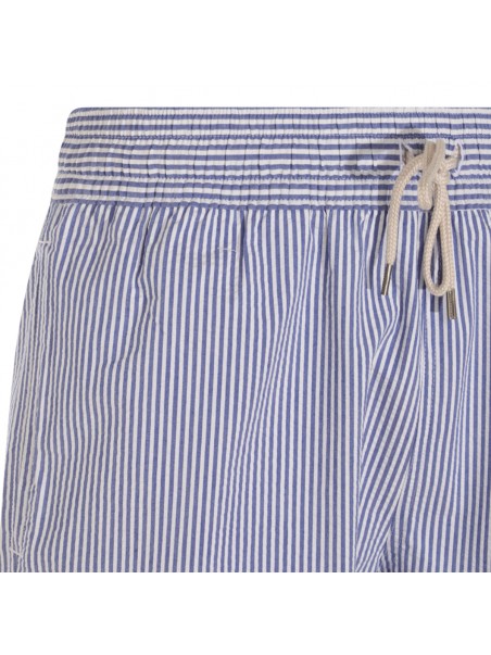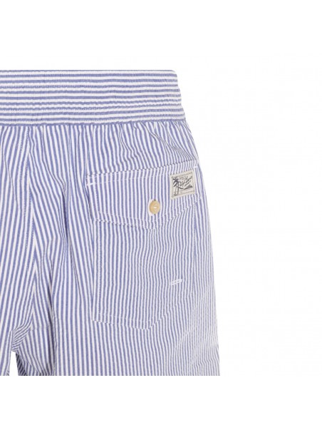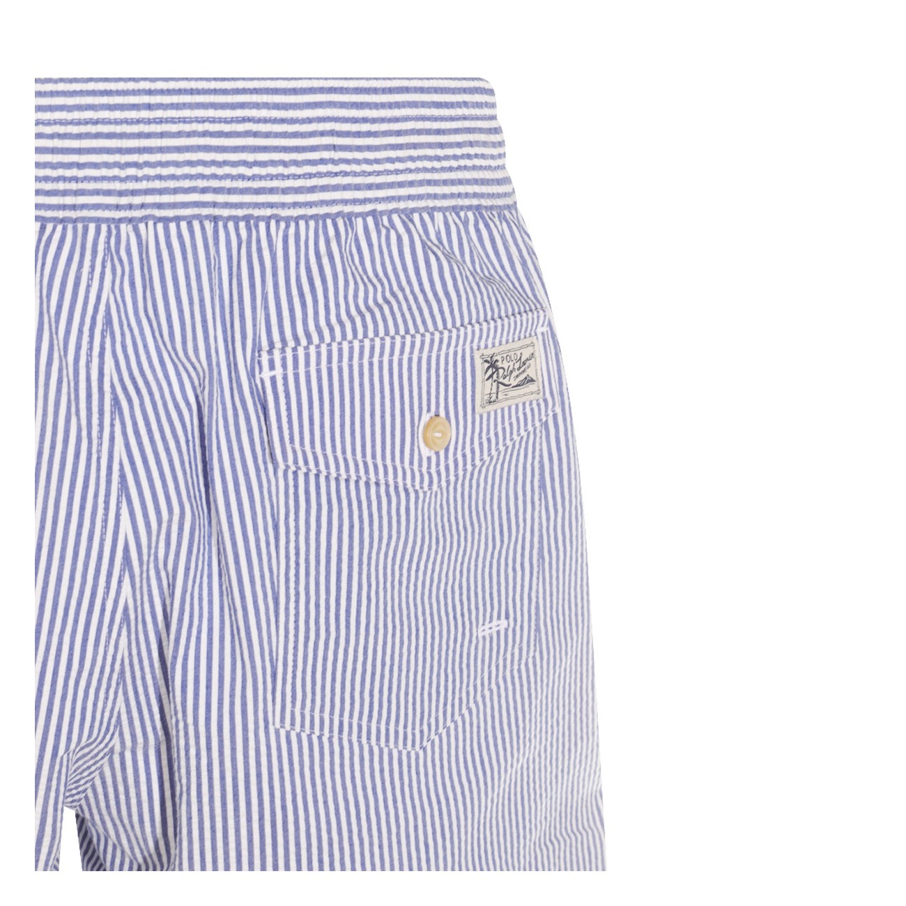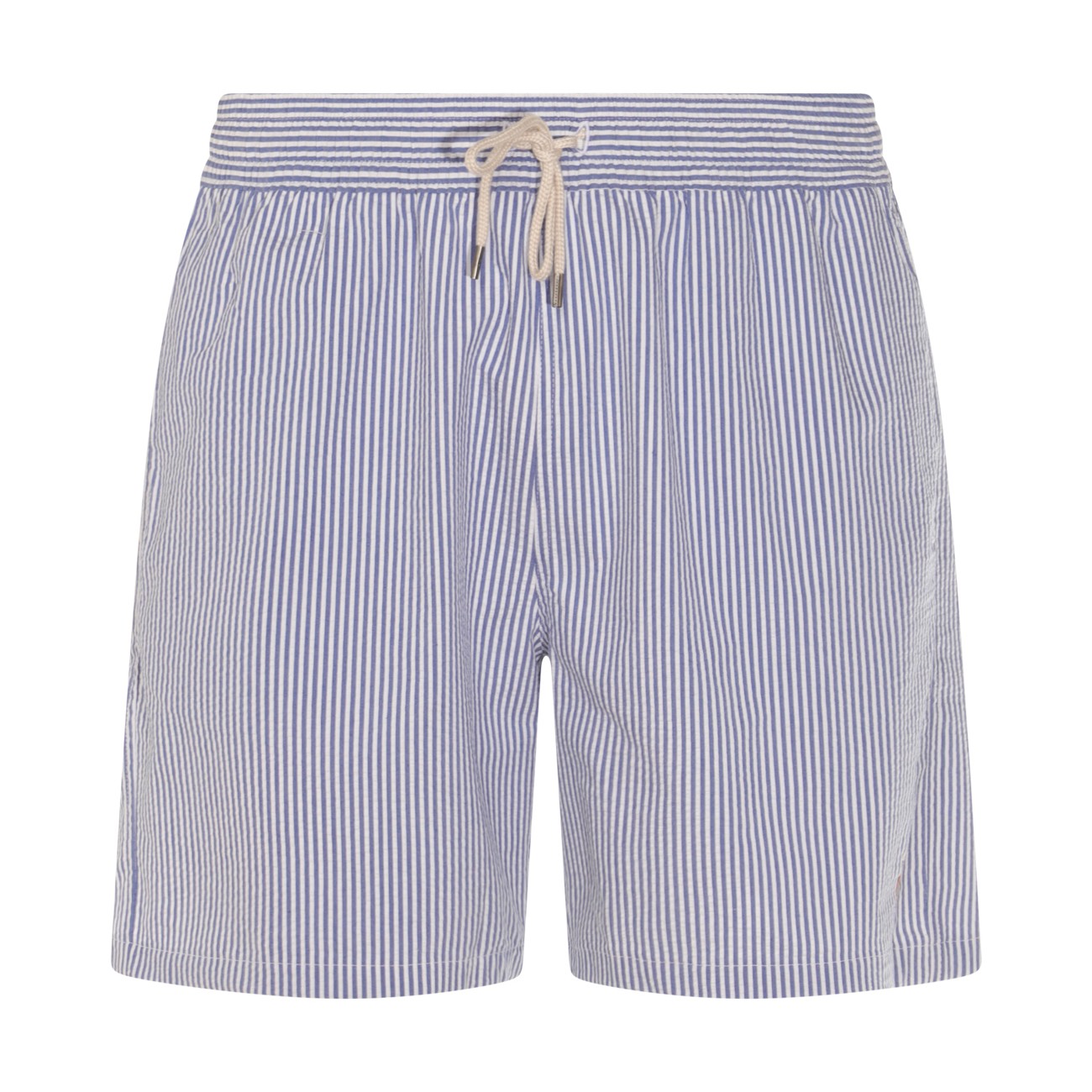 Blue cotton beachwear from Polo Ralph Lauren featuring elasticizated waist, drawstrings and pockets.