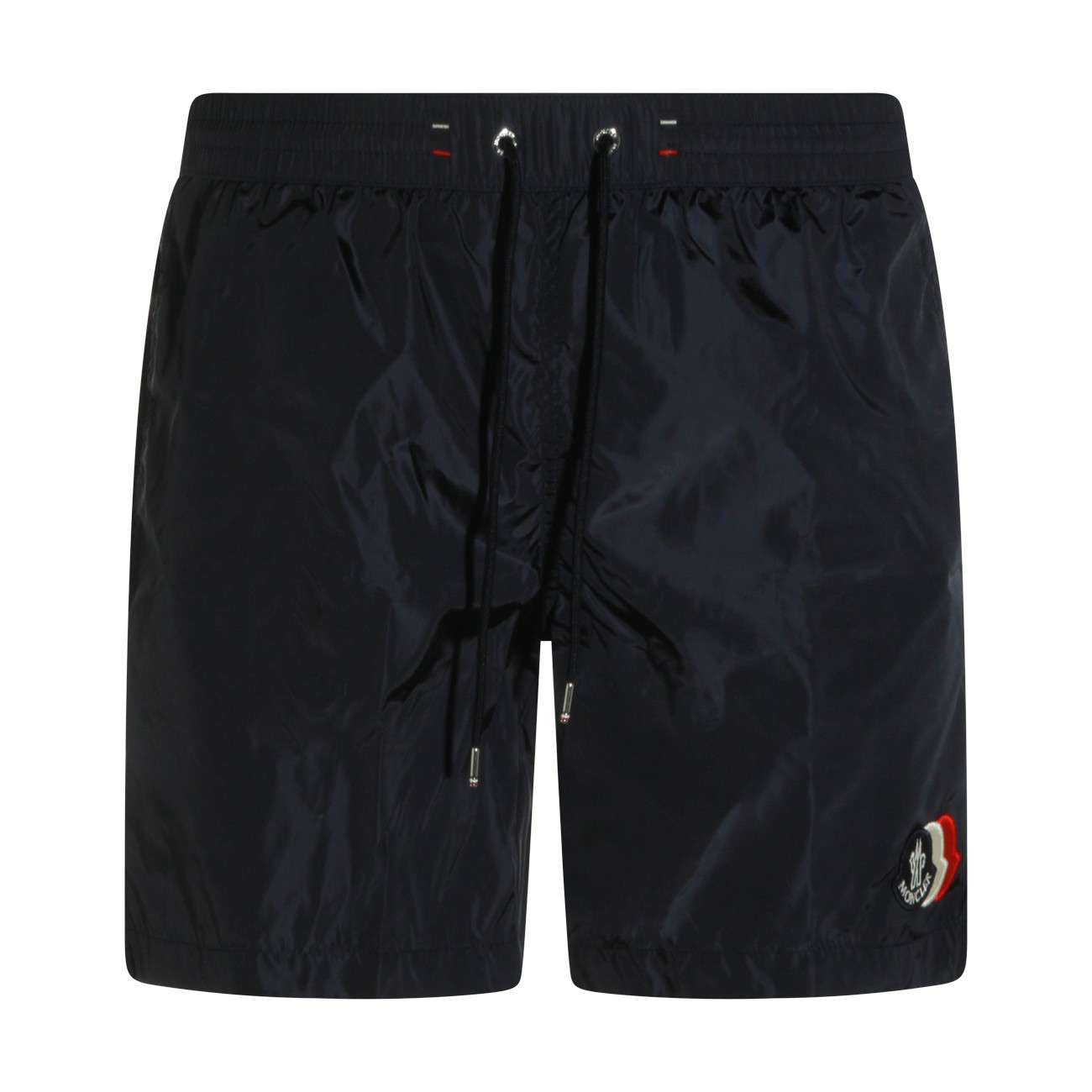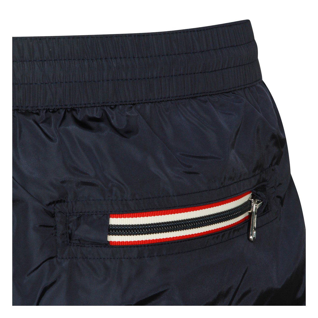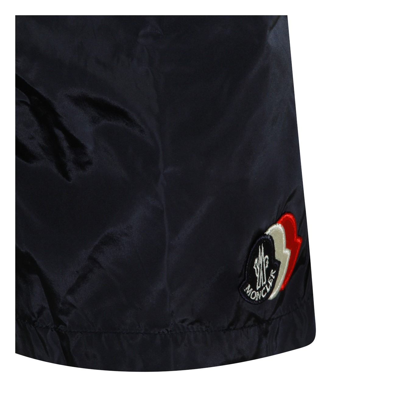 Navy beachwear from Moncler featuring drawstring closure, embroidered logo patch at side, side pockets and regular fit.