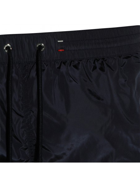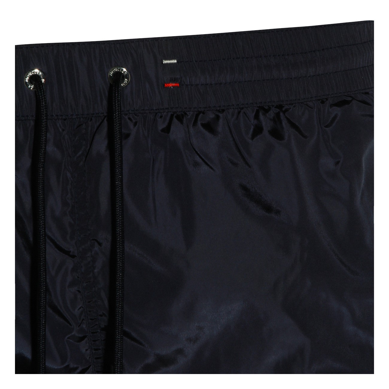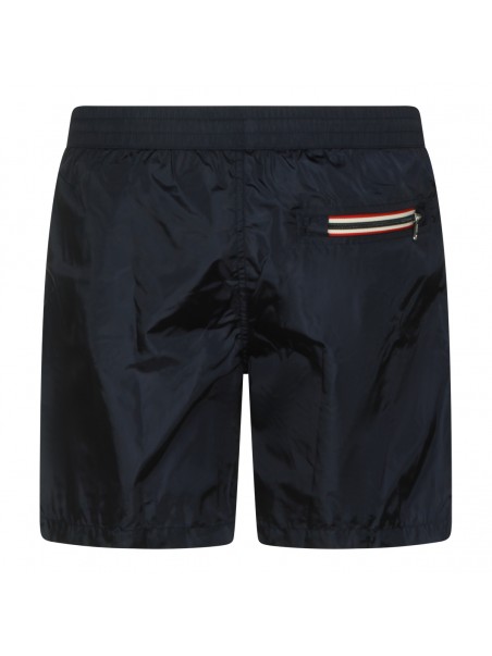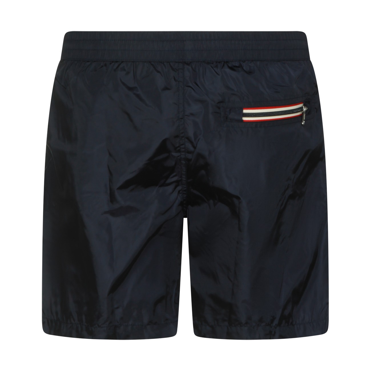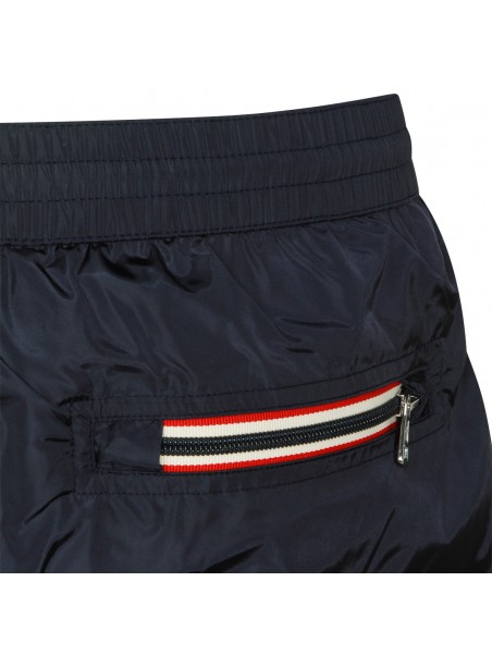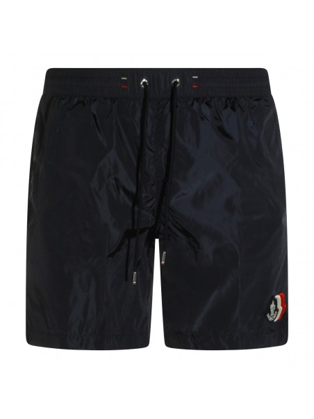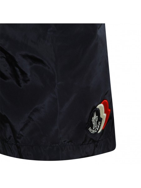 Navy beachwear from Moncler featuring drawstring closure, embroidered logo patch at side, side pockets and regular fit.