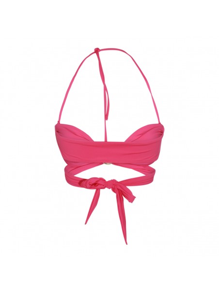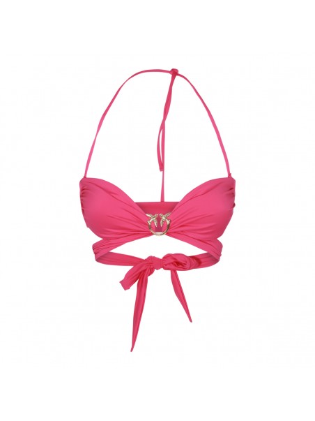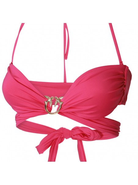 Pink top beachwear from Pinko featuring laces fastening, metal gold tone embellishment, heart neckline and elasticizated vestibility.
