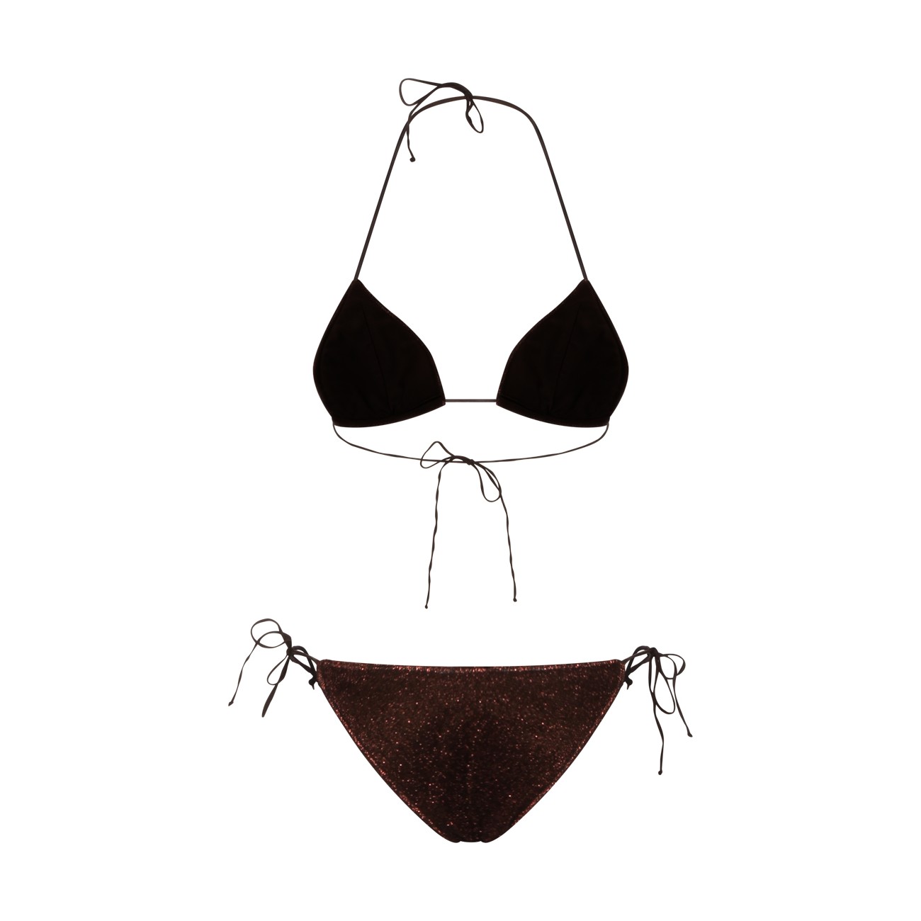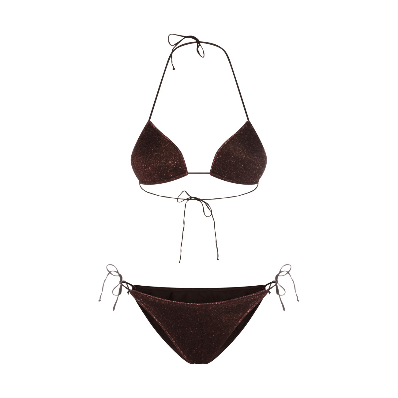 Chocolate Lumière 80s bikini beachwear from Oseree featuring two pieces, laces fastening and regular vestibility.