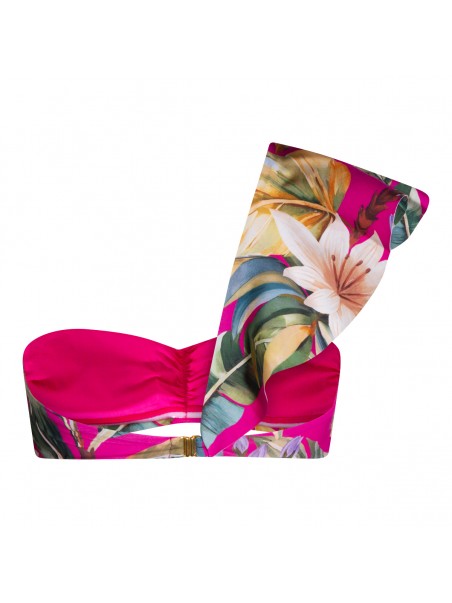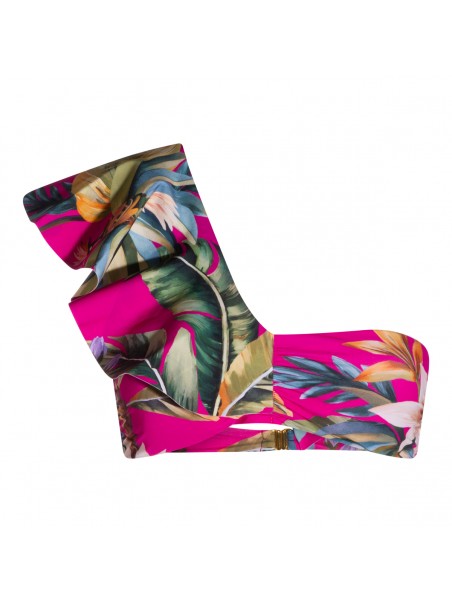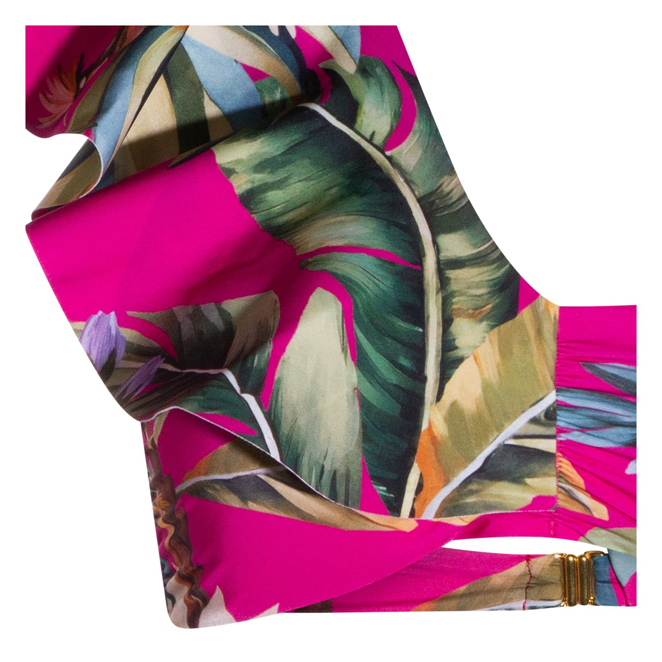 Pink top beachwear from Farm Rio featuring one shoulder, back fastening, all over stamp and regular vestibility.