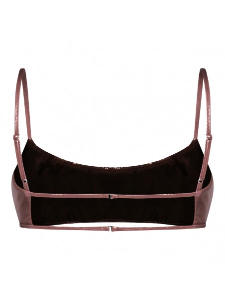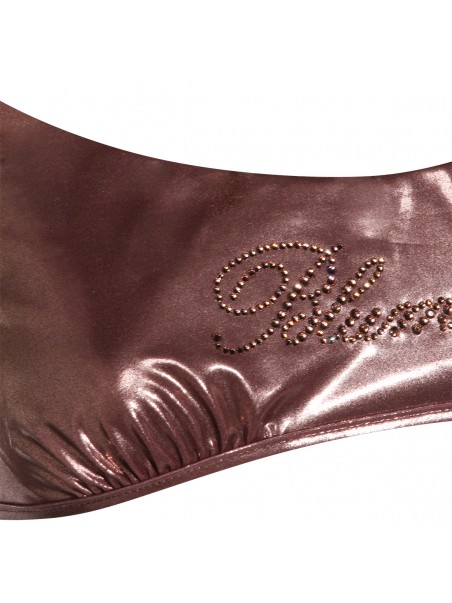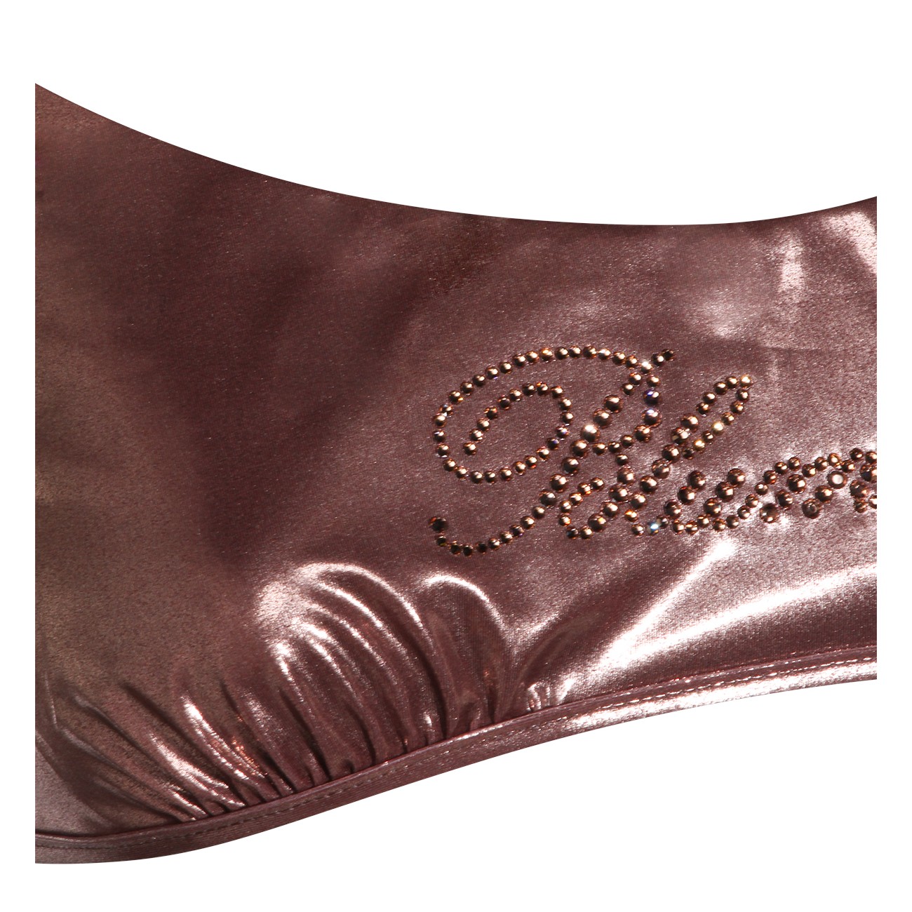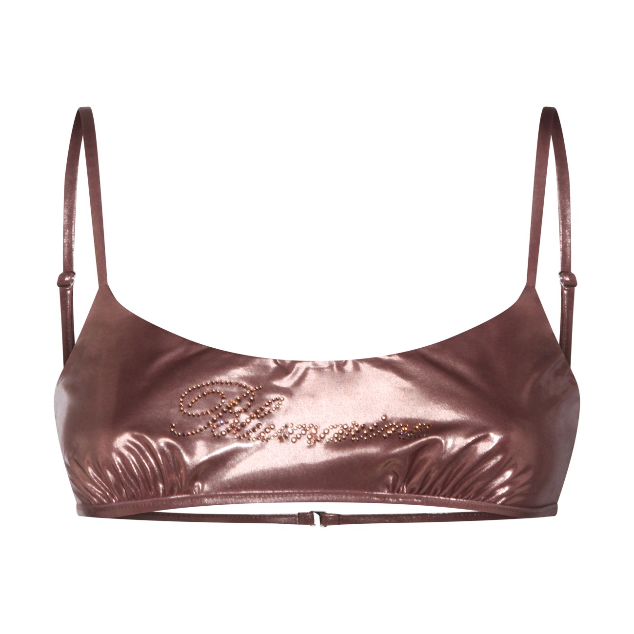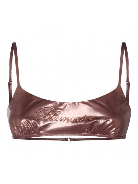 Brown top beachwear from Blumarine featuring round neckline, adjustable straps, back fastening and stitched logo.