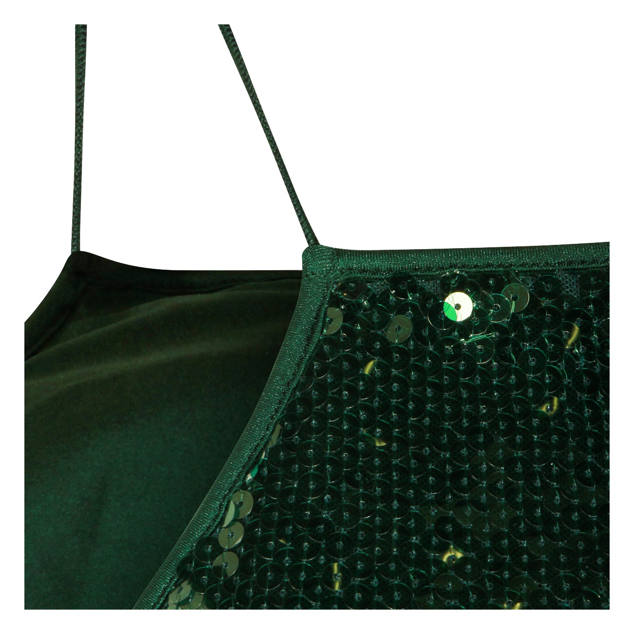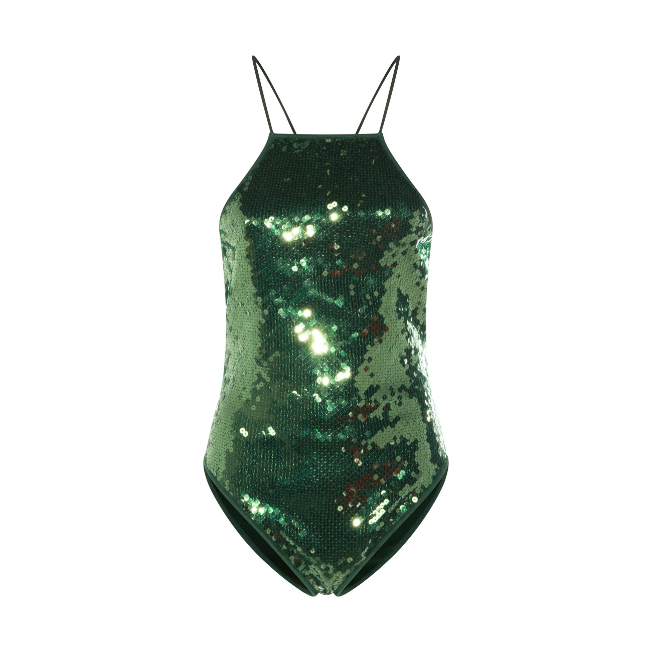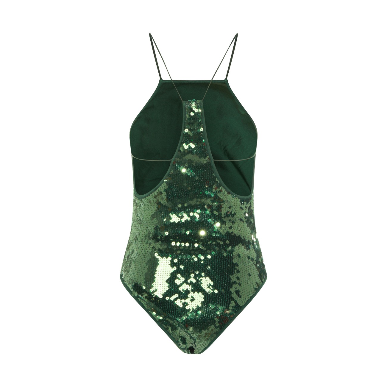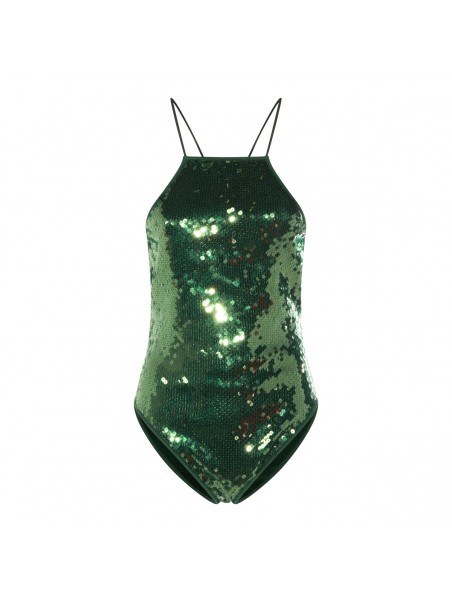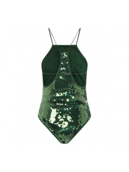 Green Marylin necklace beachwear from Oseree featuring sleeveless, all over pailettes and laces.