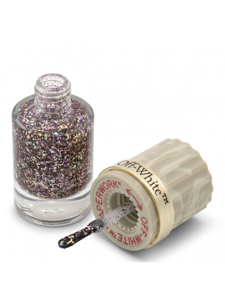 Glitter Pixel Acid Matter Top nail polish from Off-White featuring big multireflexed glitter.