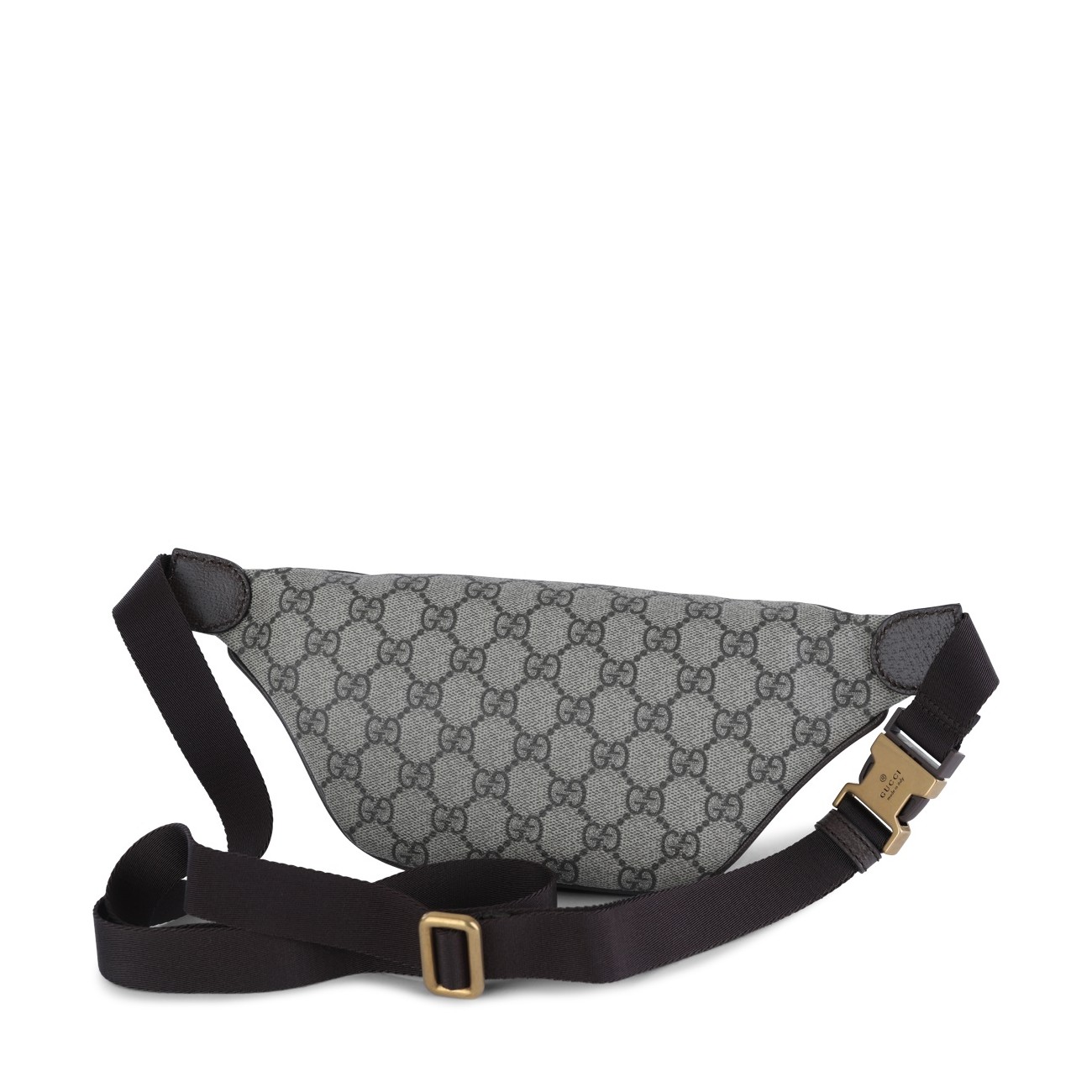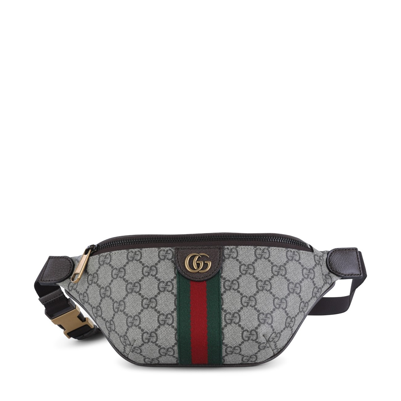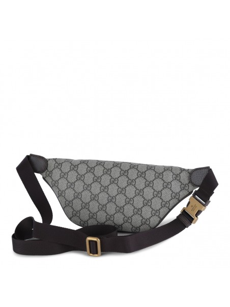 Beige belt bag from Gucci featuring adjustable size, zip fastening, monogram and gold tone logo.