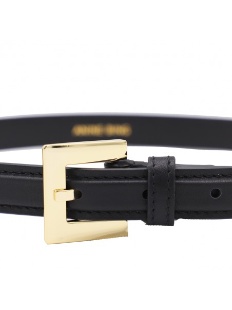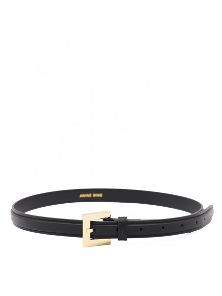 Black leather belt from Anine Bing featuring adjustable size, gold tone hardware and buckle fastening.