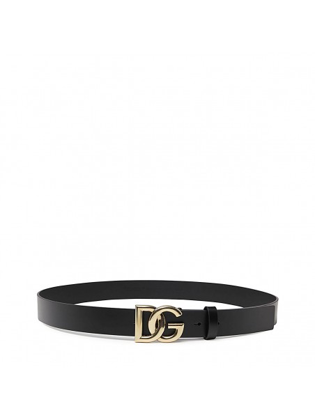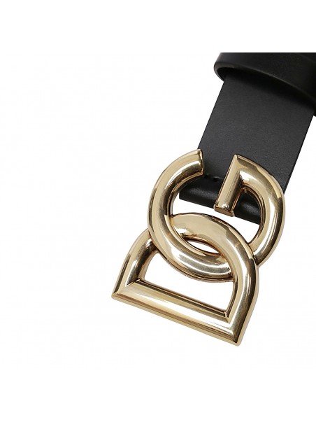 Black and gold leather belt from Dolce&Gabbana featuring frontal gold tone hardware, leather and logo.