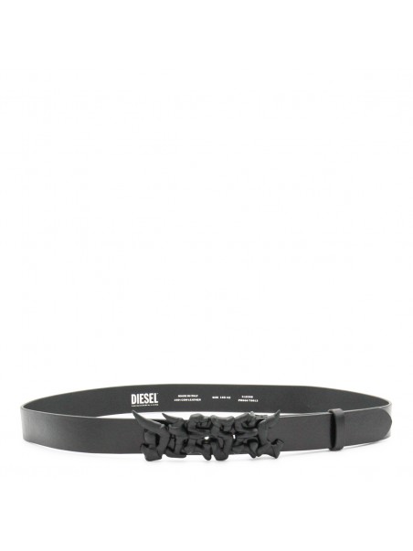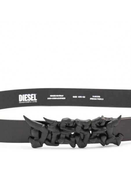 Black belt from Diesel featuring branded buckle fastening, pointed tip and adjustable size.