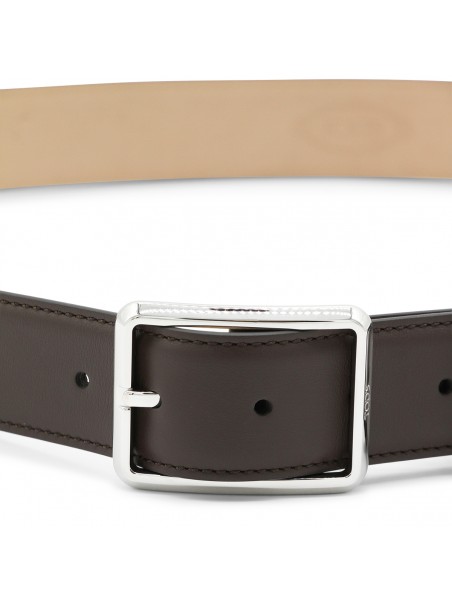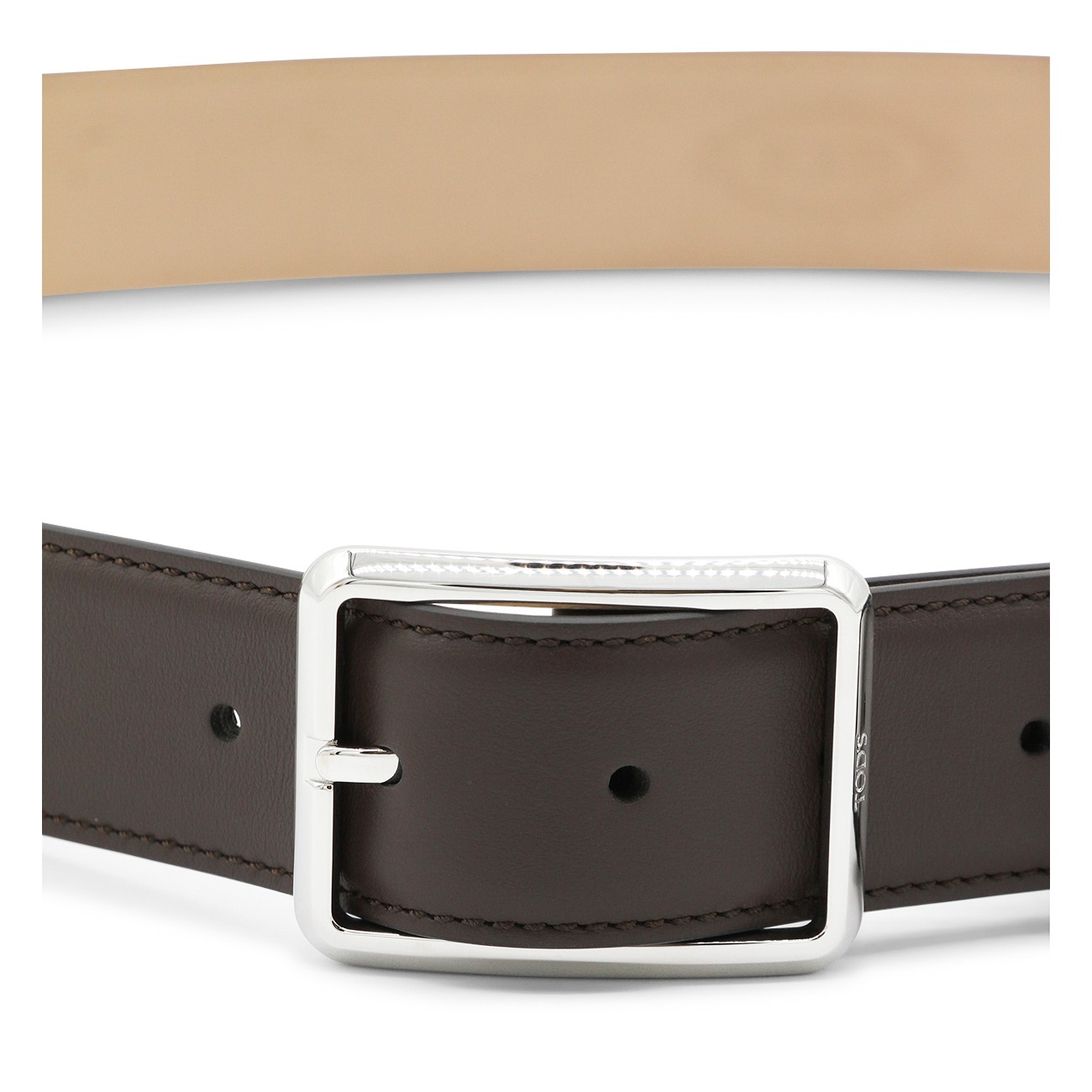Brown leather belt from Tod's featuring adjustable size and silver tone hardware.