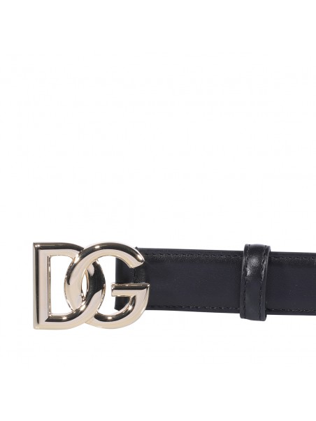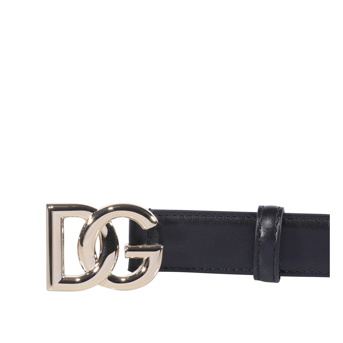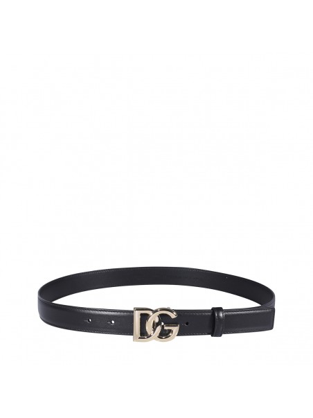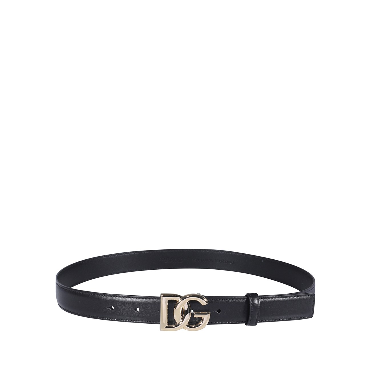 Black leather belt from Dolce & Gabbana featuring logo plaque, gold-tone hardware, buckle fastening and adjustable fit.680999