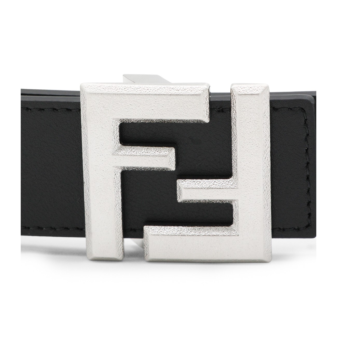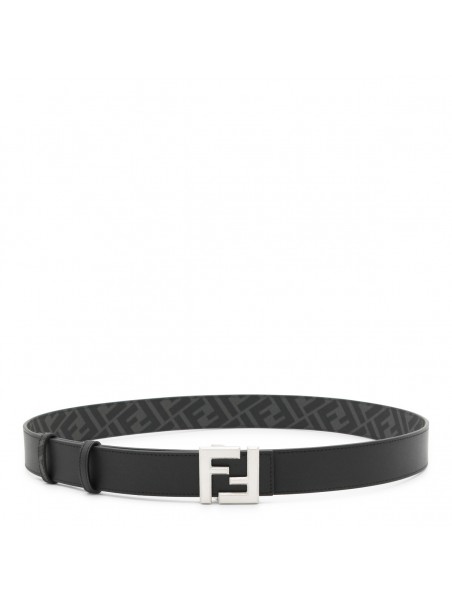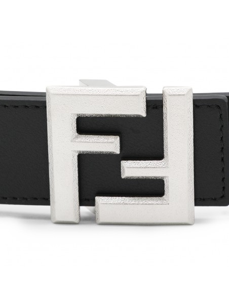 Black leather reversible belt from Fendi featuring silver tone monogram buckle, reversible and adjustable size.