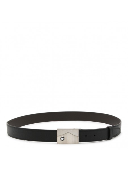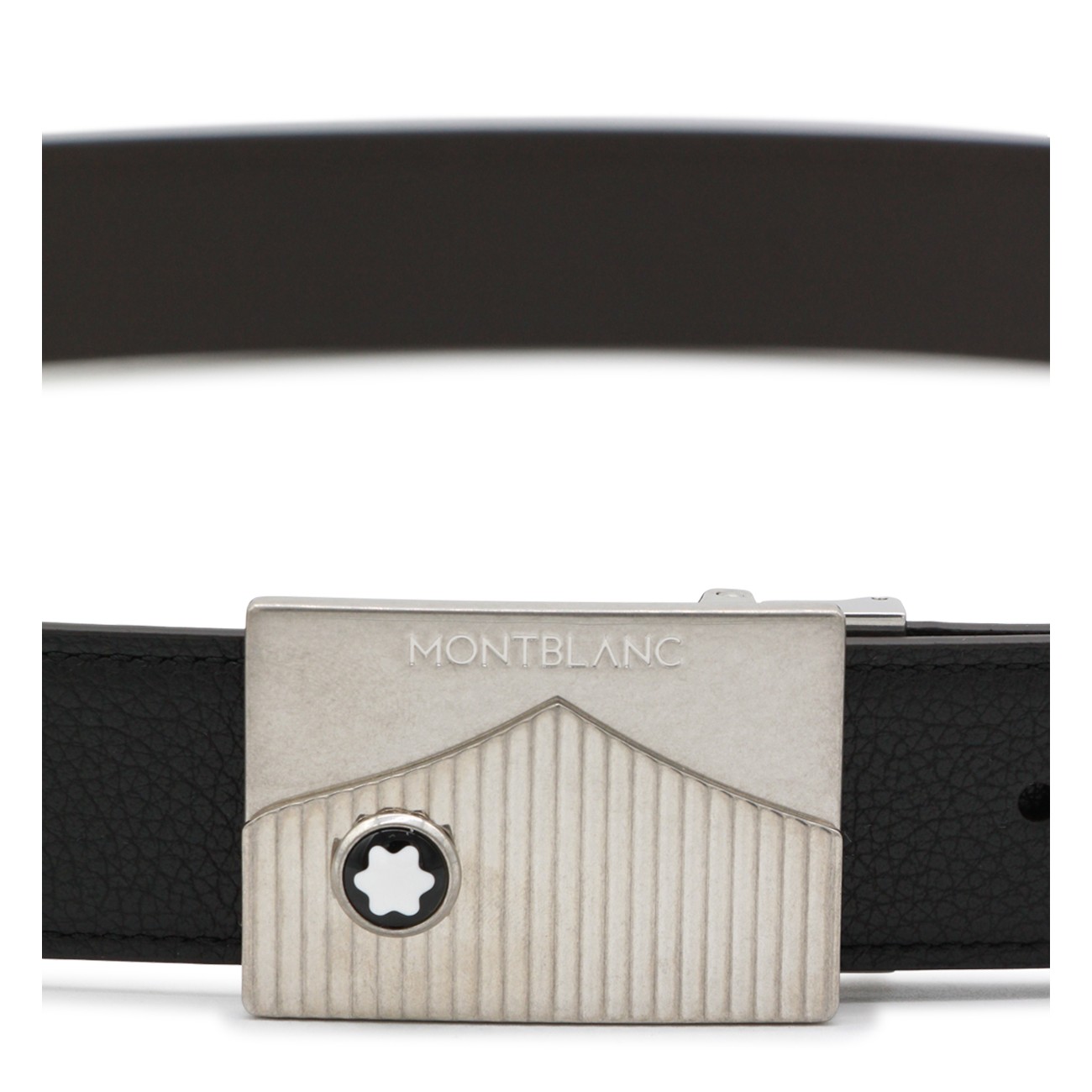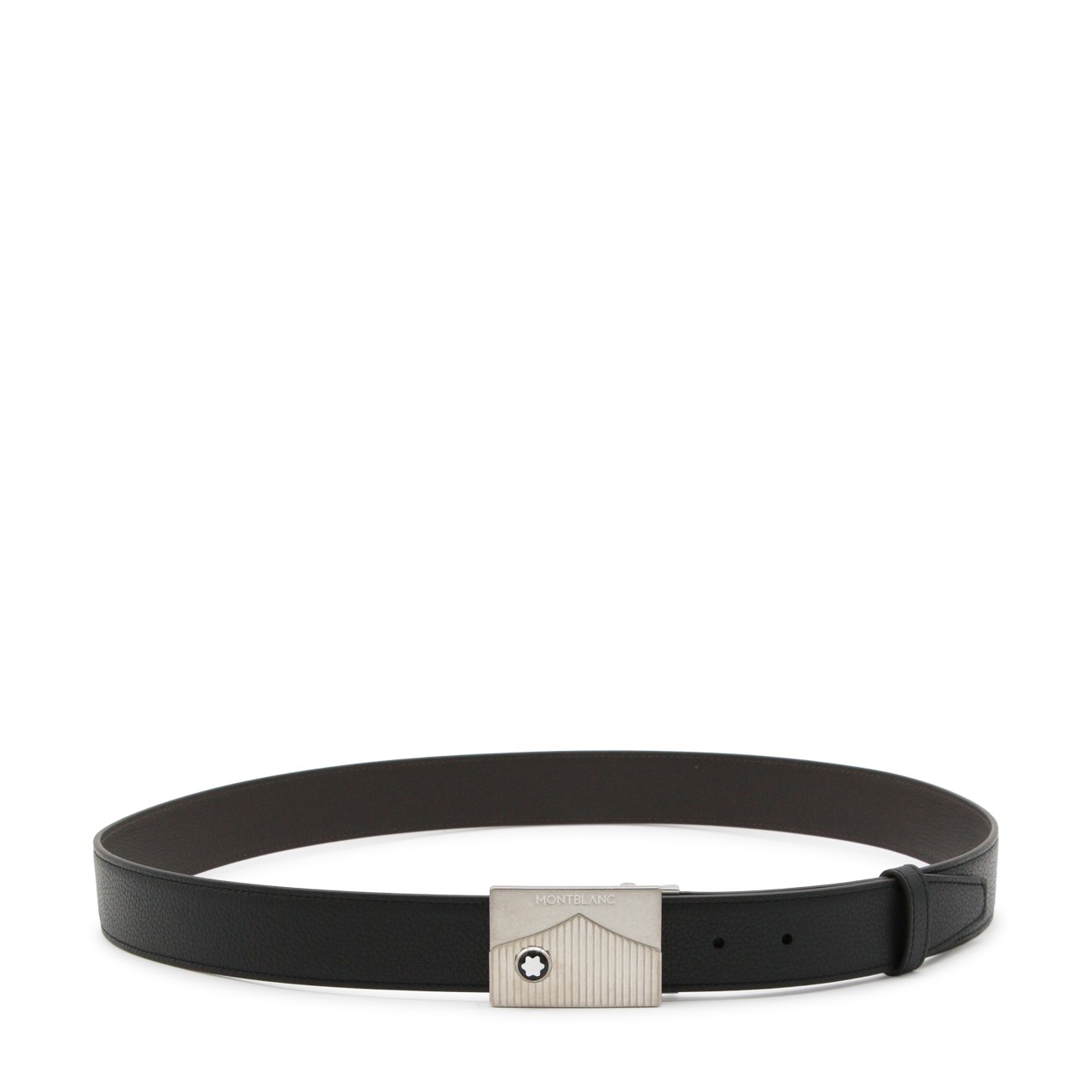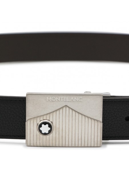 Black leather belt from Montblanc featuring rectangular buckle and self-adjusting.