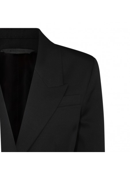 Black wool blazer from Givenchy featuring long sleeves, frontal fastening, pockets and regular vestibility.