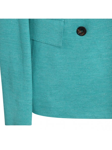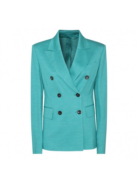 Green mint Zirlo blazer from Max Mara featuring double breasted, long sleeves, front flap pockets, contrasting buttons and satin lining.