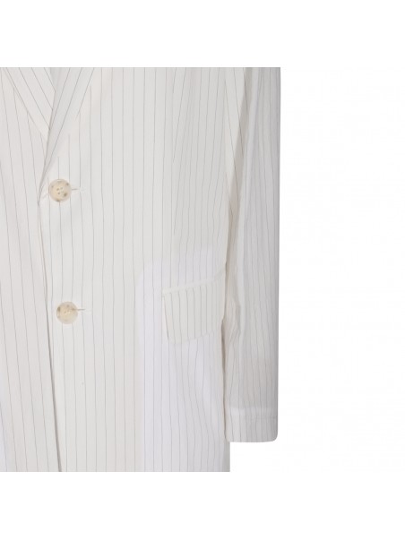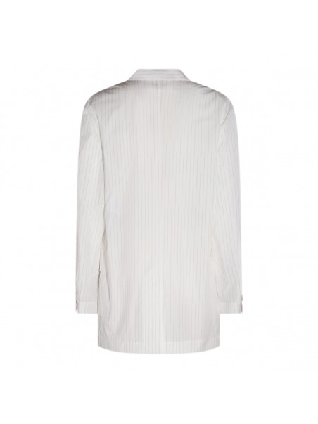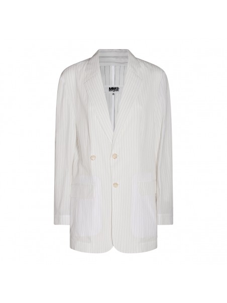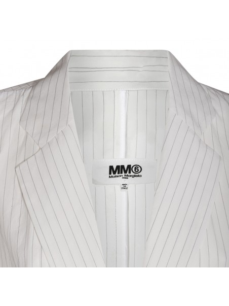 White cotton blazer from MM6 Maison Margiela featuring single breasted, side pockets and a horizontal white stich line.