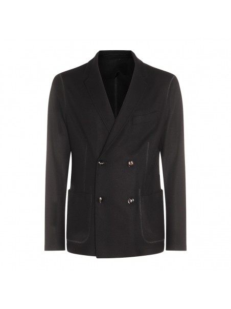 Black cashmere blazer from Giorgio Armani featuring long sleeves, double breasted, pockets and regular vestibility.