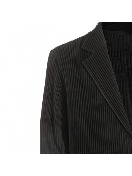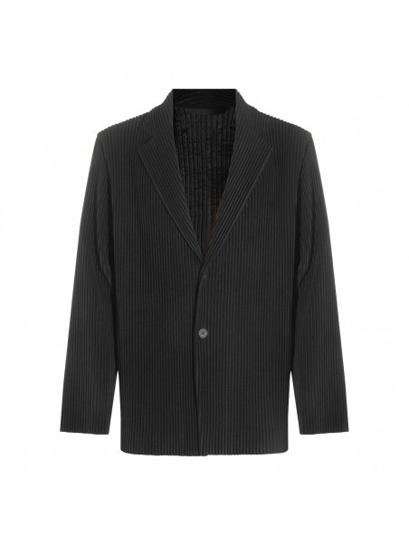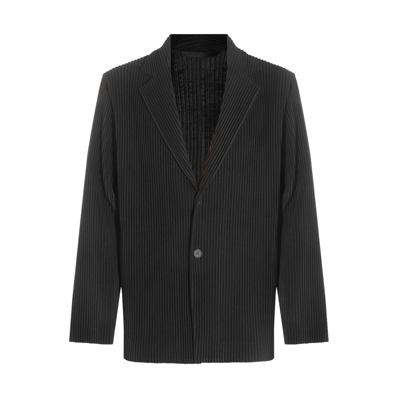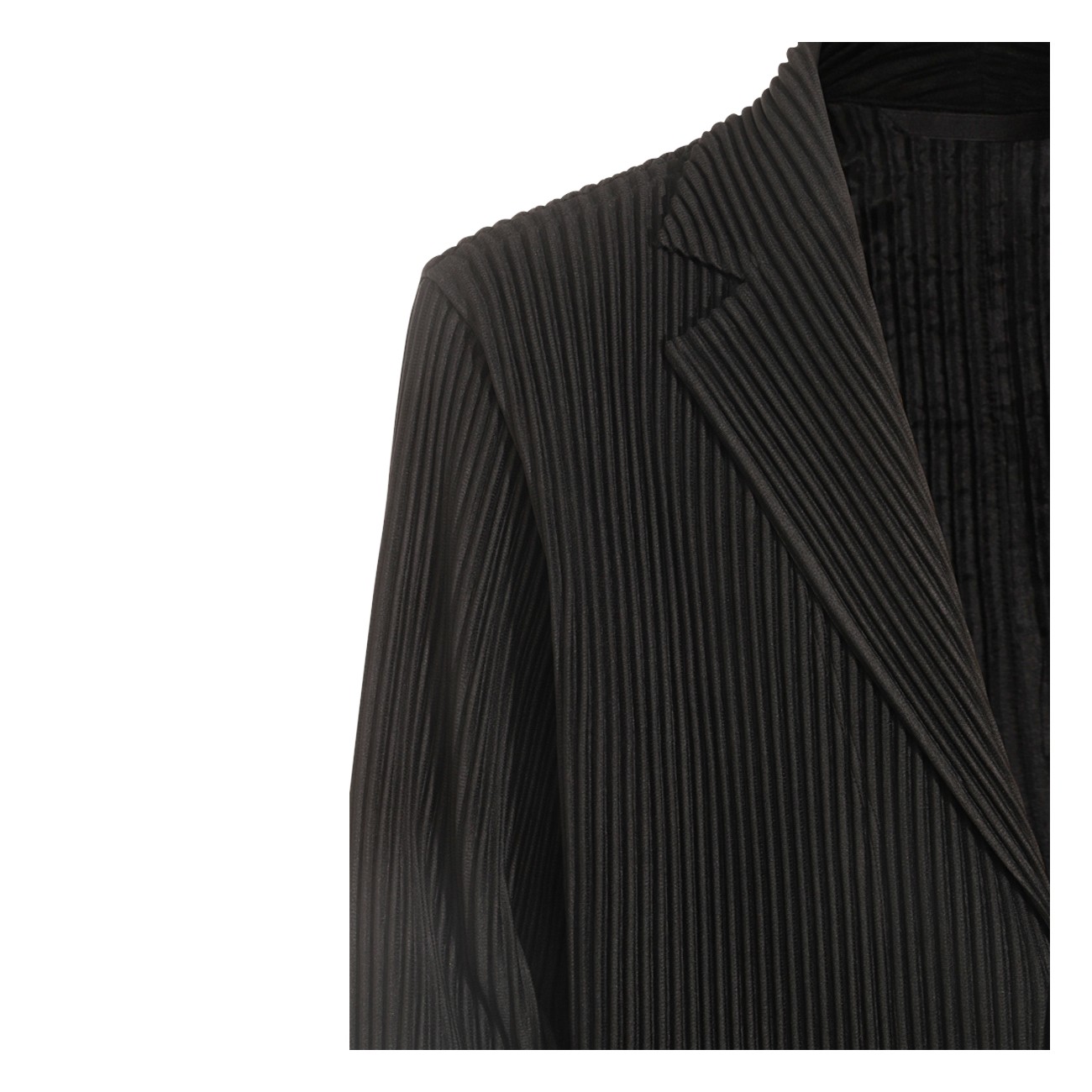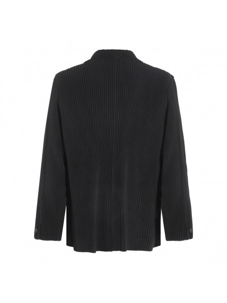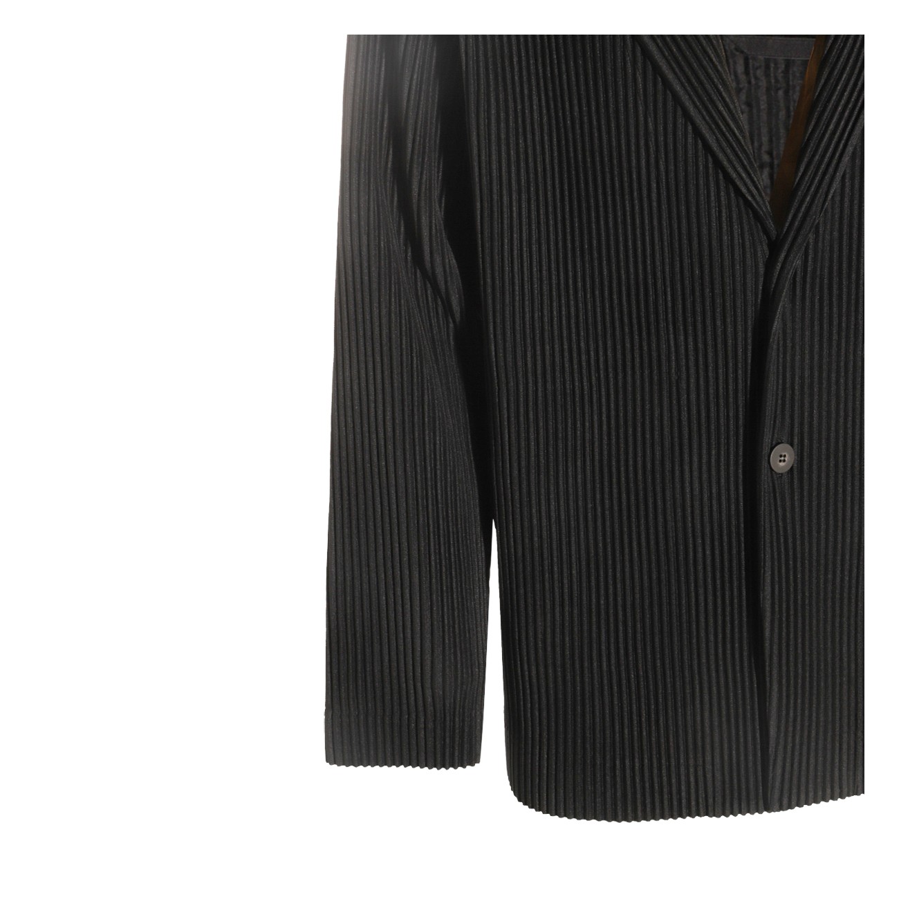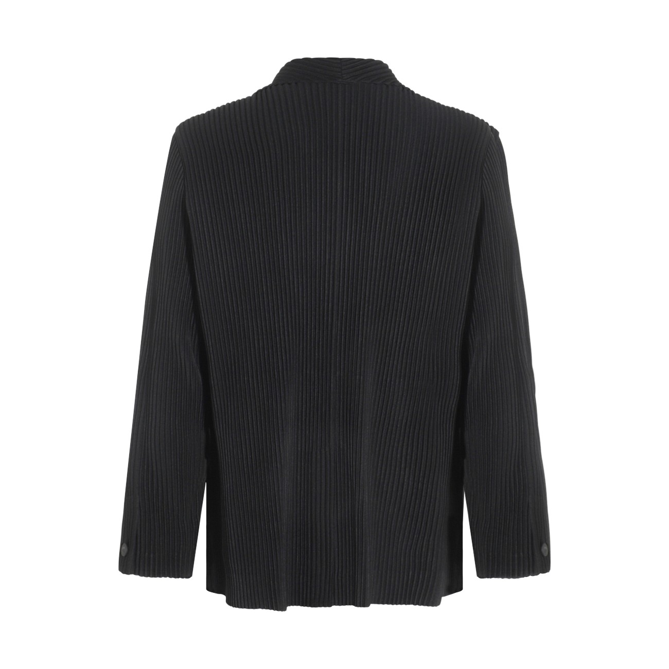 Black blazer from Homme Plisse Issey Miyake featuring long sleeves, button fastening and soft vestibility.