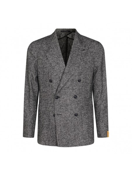 Dark grey Montecarlo blazer from Tagliatore featuring long sleeves, double bresated fastening, buttons and regular vestibility.