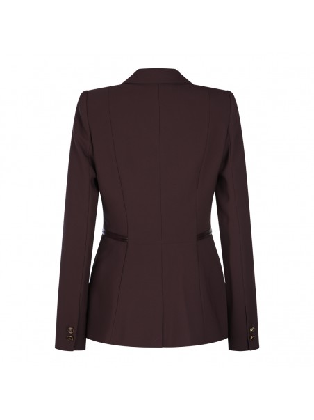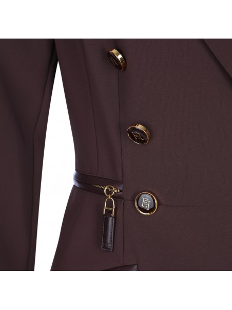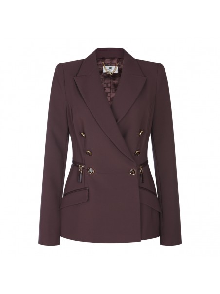 Merlot double breasted blazer from Elisabettaa Franchi featuring stretch fit, long sleeves, double breasted line, utton closure and logo details.