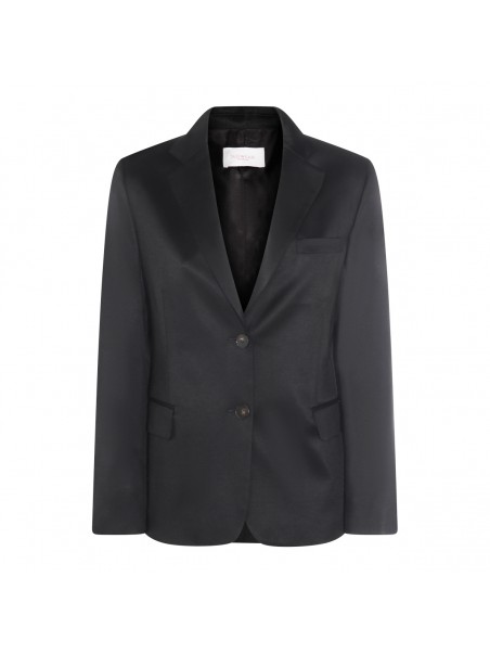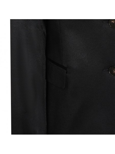 Black wool blazer from Montedoro featuring long sleeves, round hem, pockets, buttons fastening and regular vestibility.