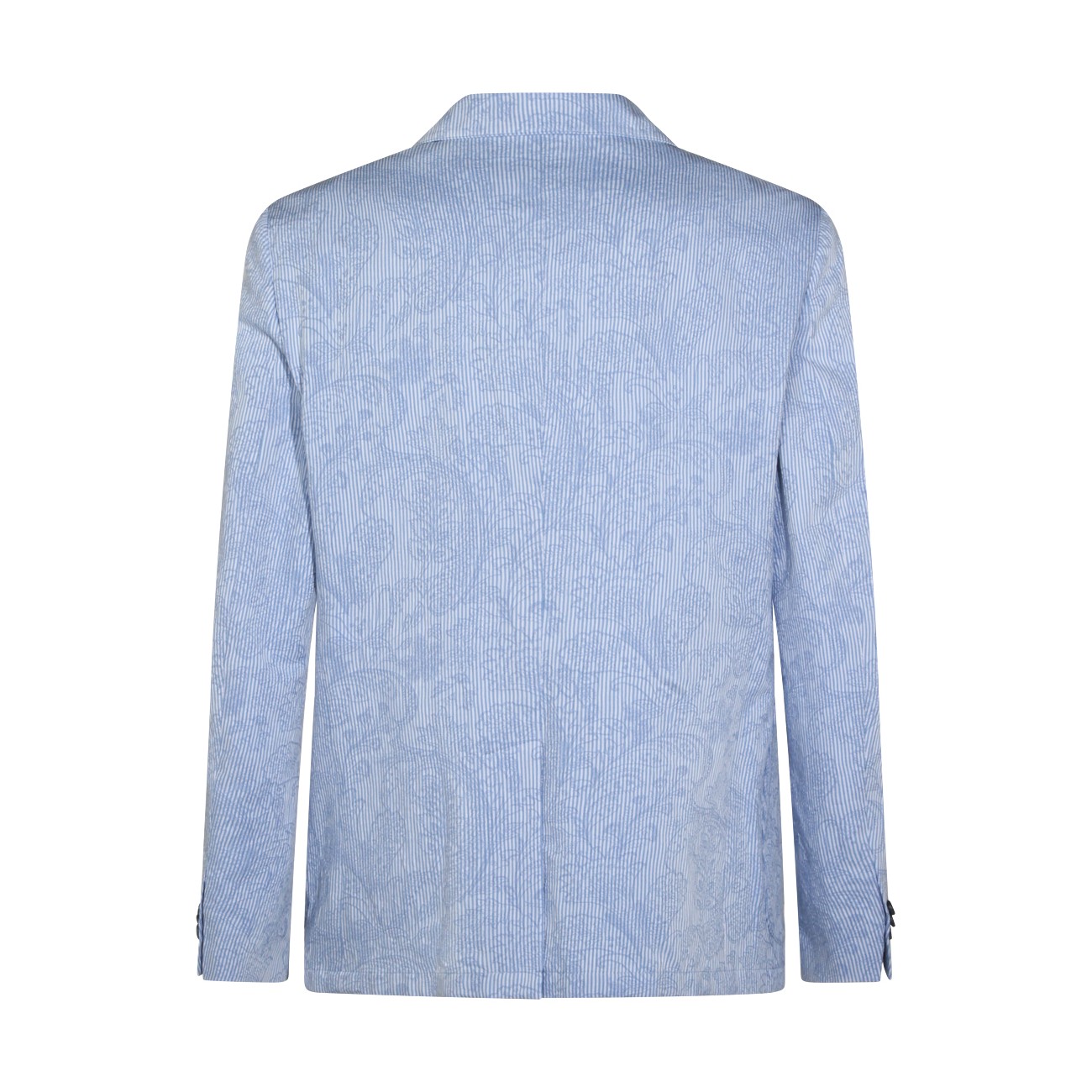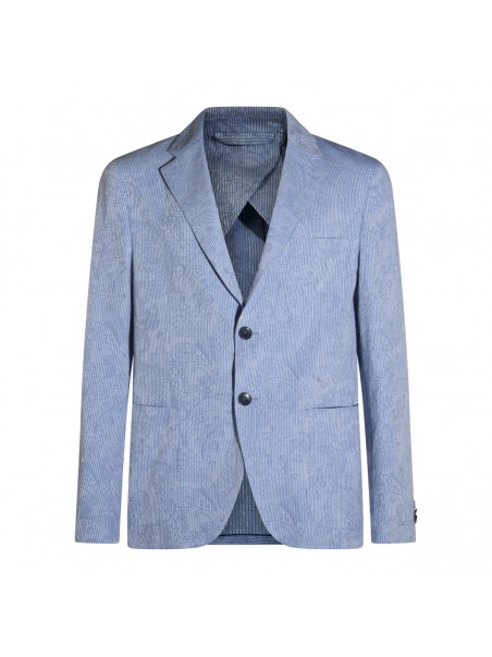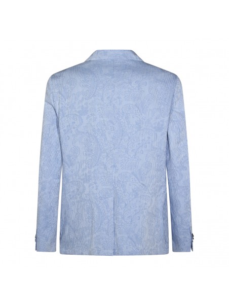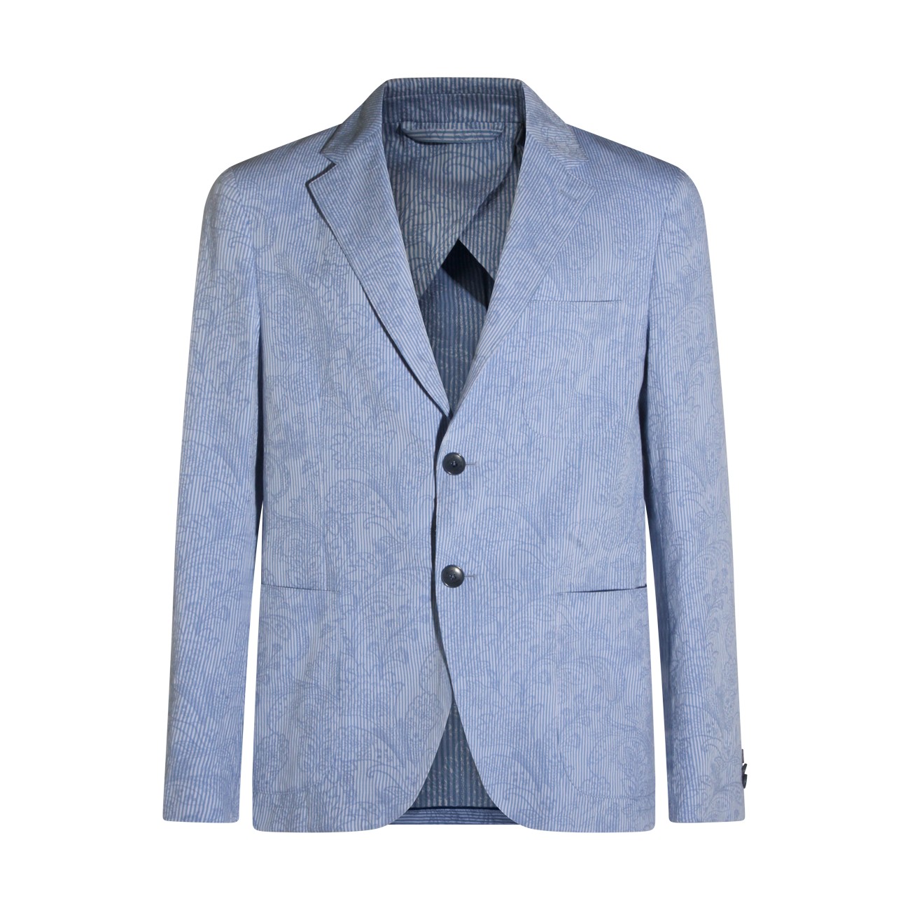 Light blue cotton blazer from Etro featuring long sleeves, frontal buttons fastening, pockets and regular vestibility.