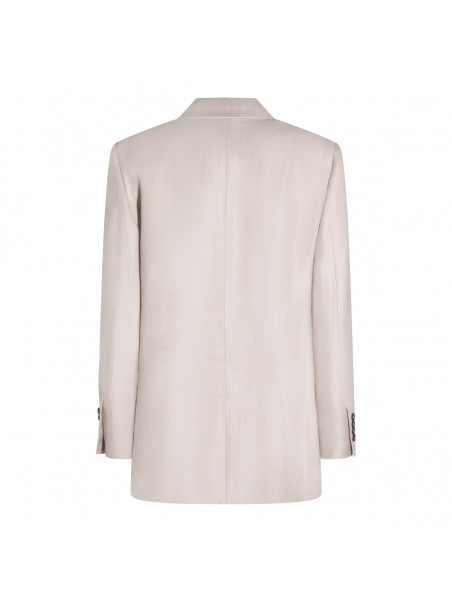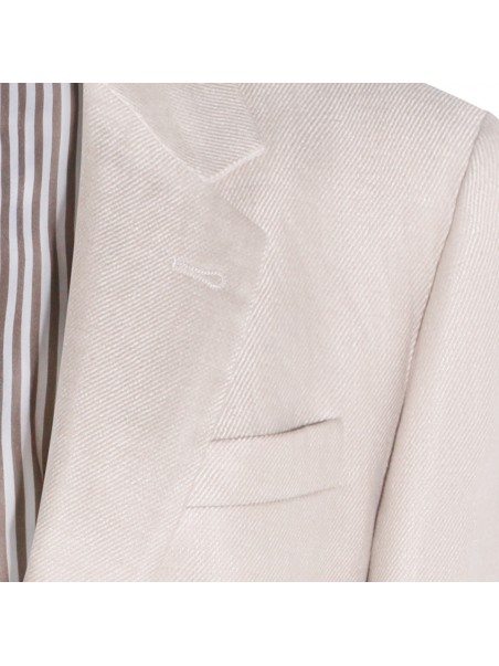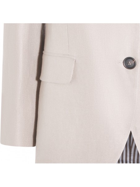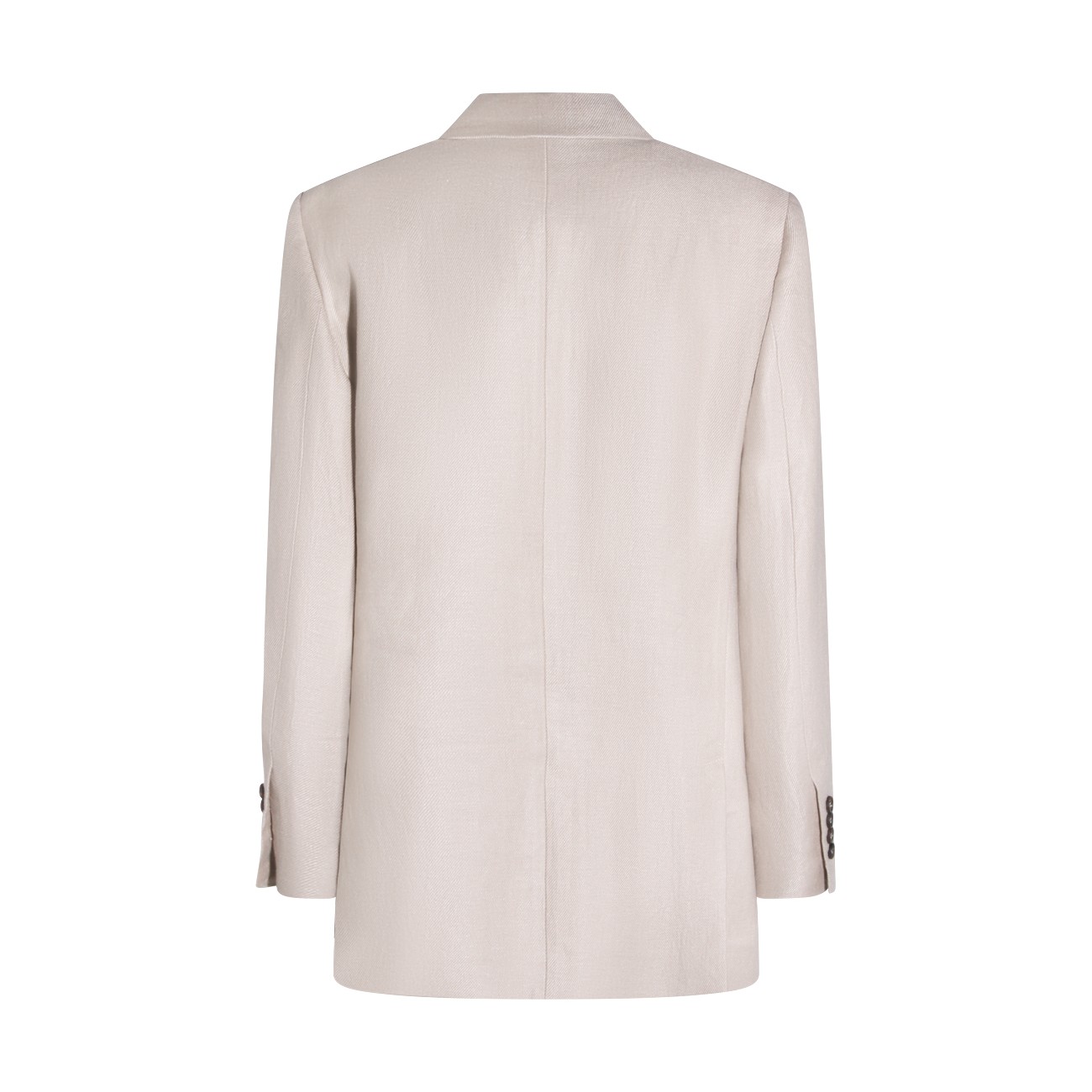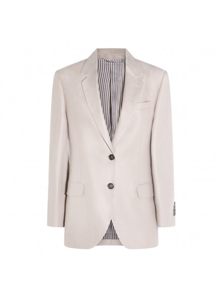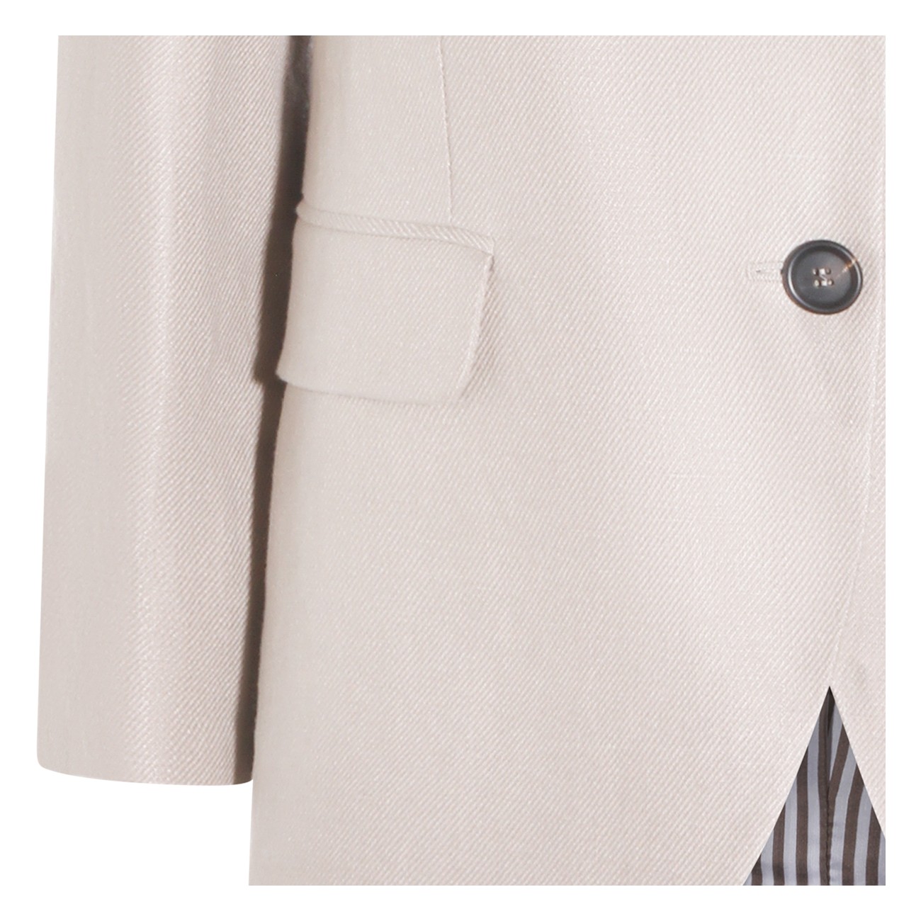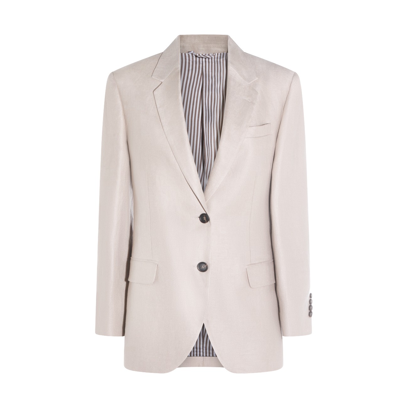 Pale oak linen blazer from Brunello Cucinelli featuring long sleeves, round hem, pockets, buttons fastening and regular vestibility.