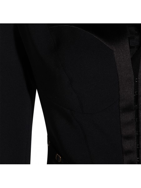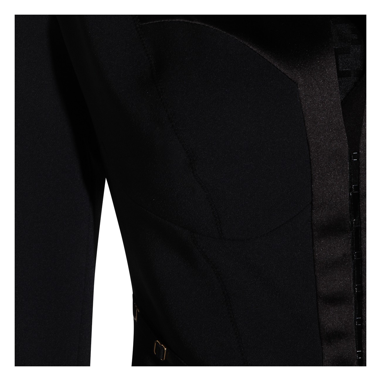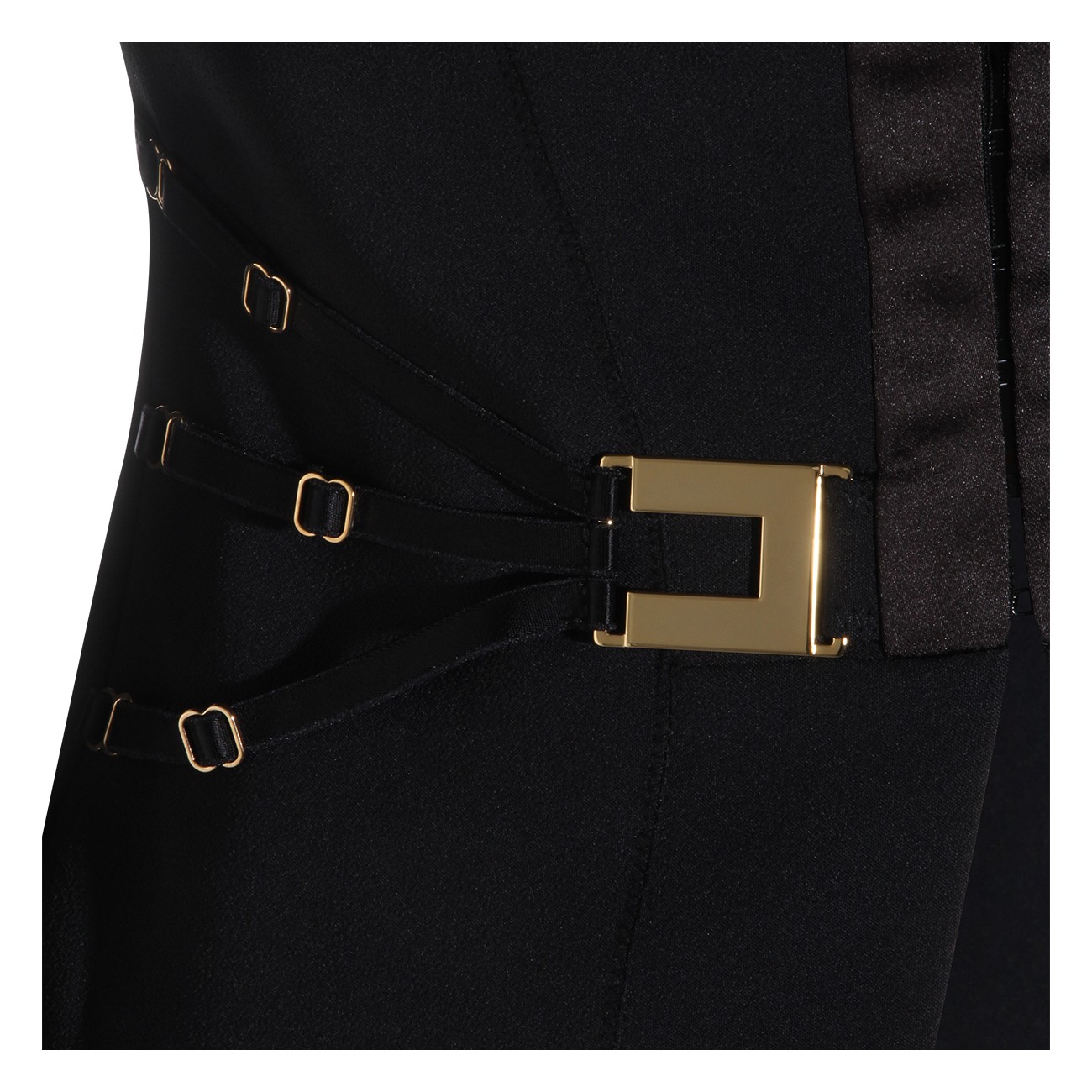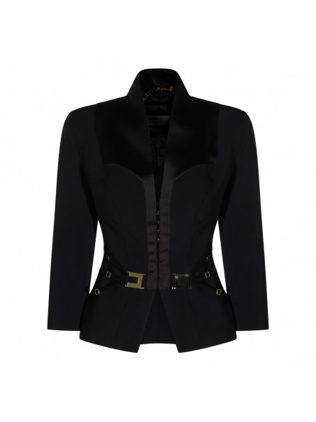 Black blazer from Elisabetta Franchi featuring long sleeves, V-neck, buckle with gold tone logo hardware and regular fit.