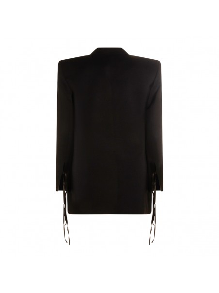 Black blazer from Nissa featuing long sleeves, double breasted fastening, pockets and sleeves laces.