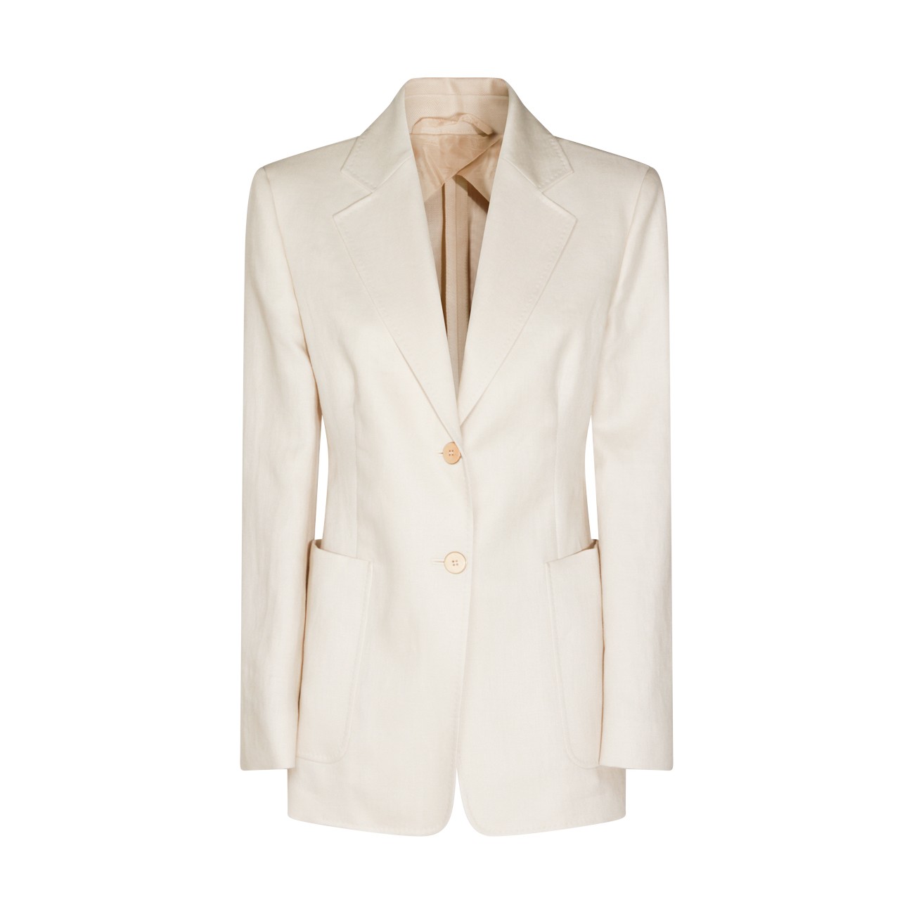 Cream Volonta linen blazer from Max Mara featuring long sleeves, buttons fastening, pockets and regular vestibilty.