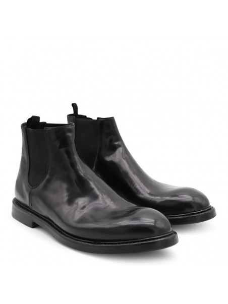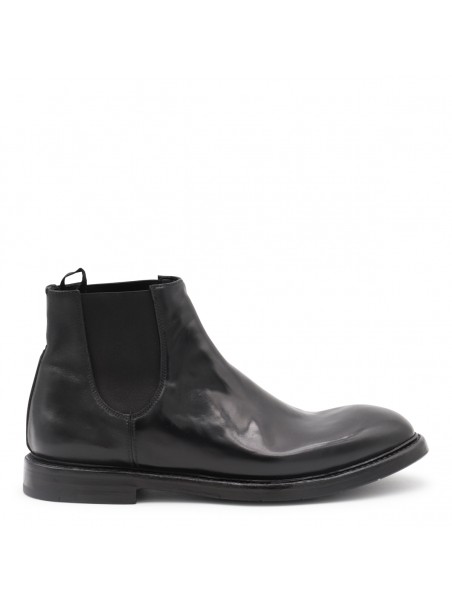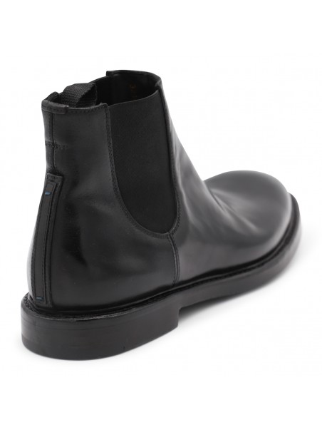 Black leather boots from Premiata featuring round toe, leather sole and ankle height.