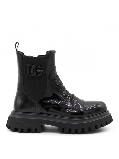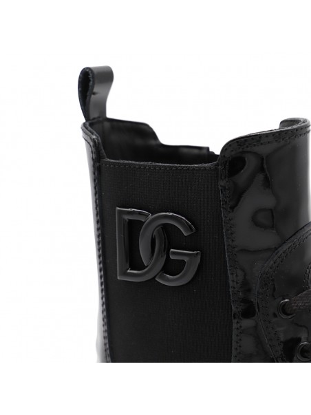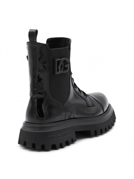 Black leather boots from Dolce&Gabbana featuring round toe, leather sole, lucid effect, logo and inside zip fastening.